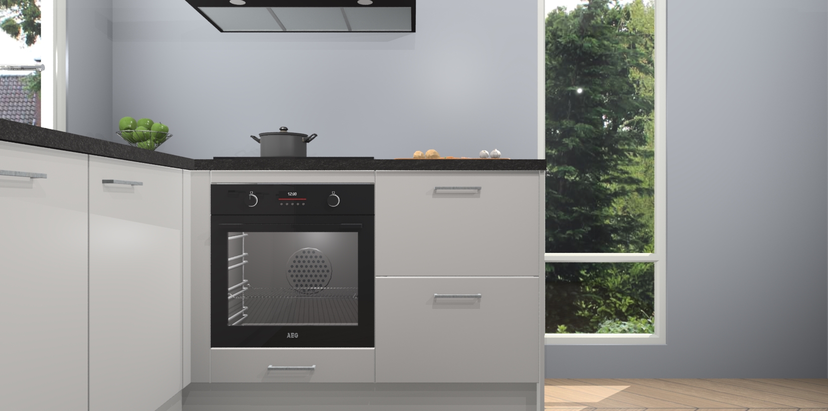 De Zijdegrijze keuken Phuket heeft alles wat u maar kunt wensen. Niet alleen zijn er softclose deuren, maar ook 5 ingebouwde apparaten: een oven, inductiekookplaat, afzuigkap, vaatwasser en koelkast - waarbij u later gemakkelijk naar het AEG merk, van inductiekookplaat naar kookplaat met geïntegreerde afzuiging of van oven naar combimagnetron kunt upgraden. Dat alles tegen een vast laag tarief! Bovendien geeft de Zijdegrijze keuken Phuket supersnelle levering van 7 weken. Echt iets voor u als u er niet op wilt wachten om het resultaat te zien in eigen keuken!