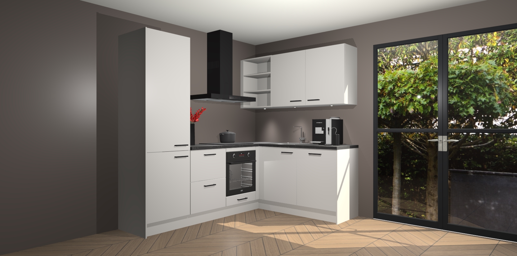 Wauw, dit is de Zijdegrijze keuken Pilsen! U kunt gerust zeggen dat u elegantie combineert met functionaliteit met deze keuken. Met een modern en chique ontwerp is de keuken precies wat u nodig heeft om uw ruimte te verfraaien. De binnenzijde van de kasten is in dezelfde donkere kleur als de buitenzijde voor een uniforme look, compleet met softclose-kasten die stil sluiten.