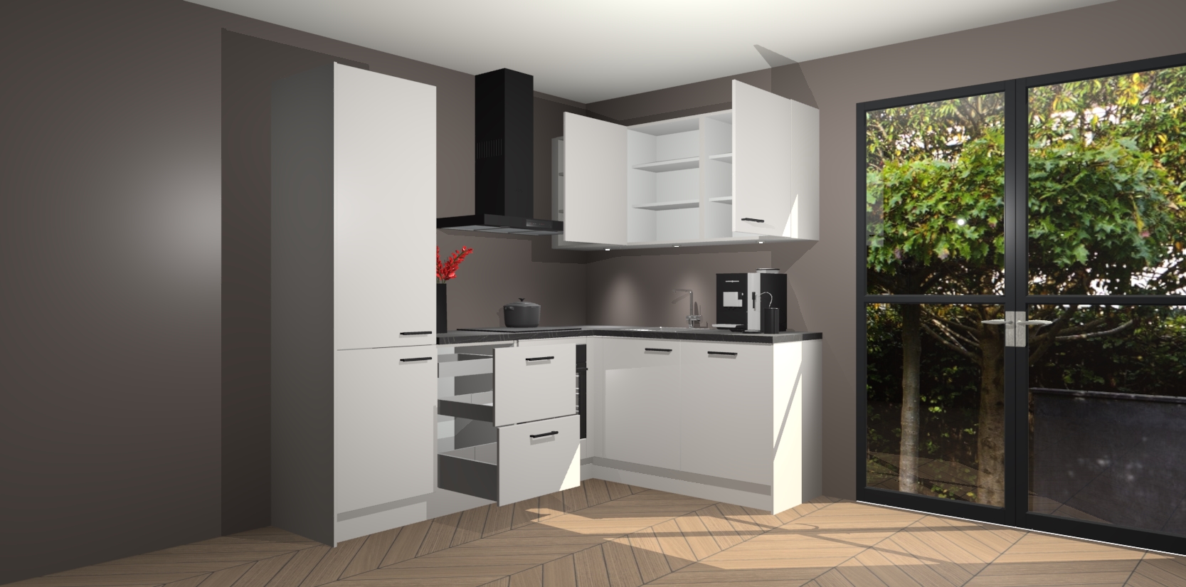 Inclusief plinten, stelpoten en werkblad