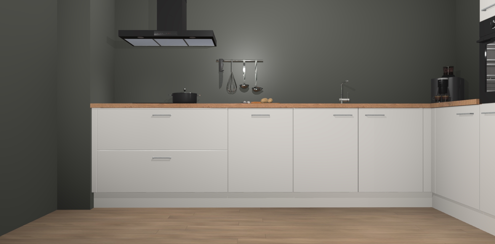 Inclusief plinten, stelpoten en werkblad