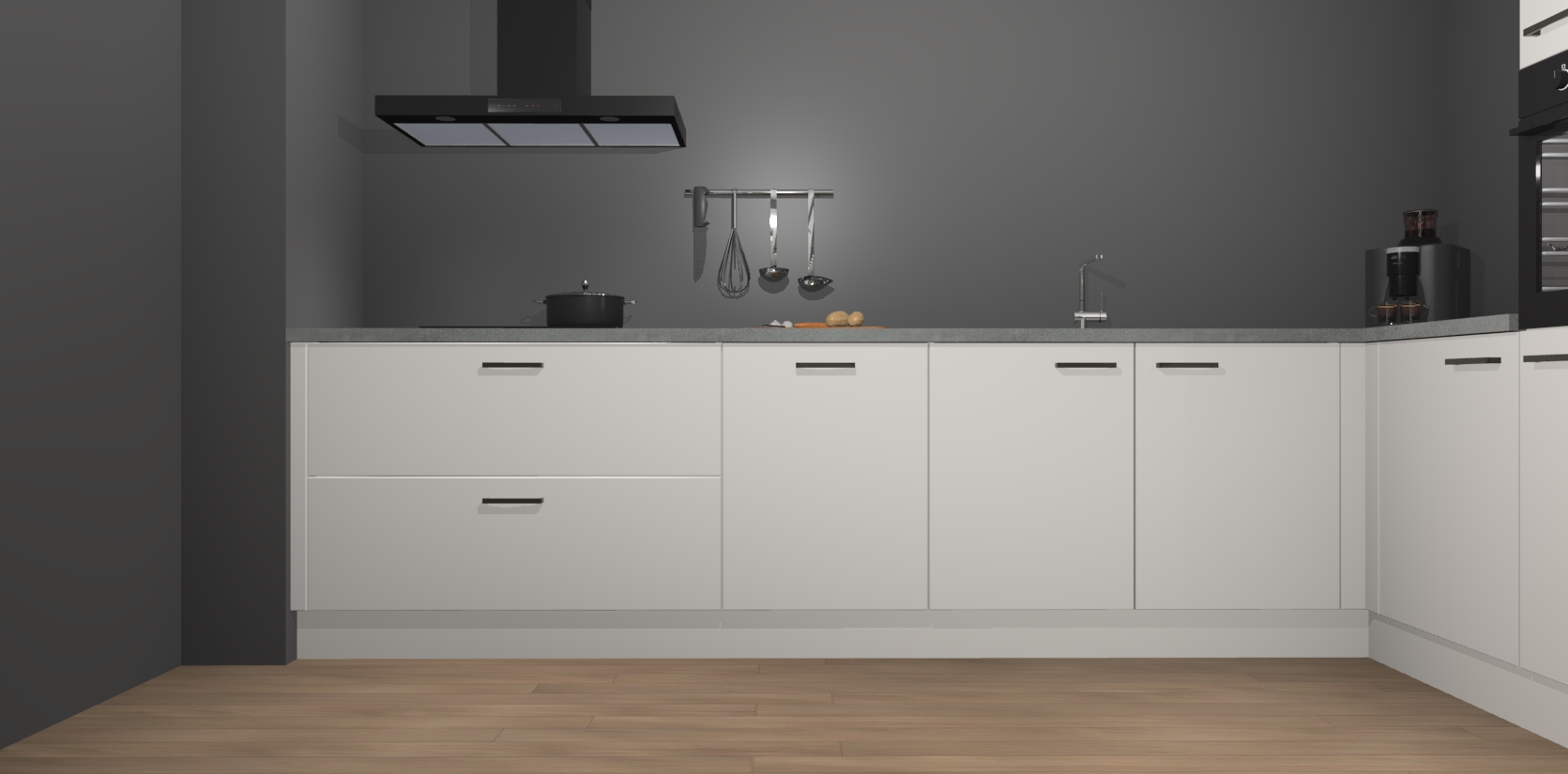 Welkom bij de Zijdegrijze keuken Portland. Deze prachtige keuken zal de komende jaren het middelpunt van de belangstelling in uw huis zijn. Uitgerust met vijf inbouwapparaten komt u nooit kookgereedschap tekort. Bovendien geeft de warme houtlook elke ruimte een uitnodigende en tijdloze uitstraling.