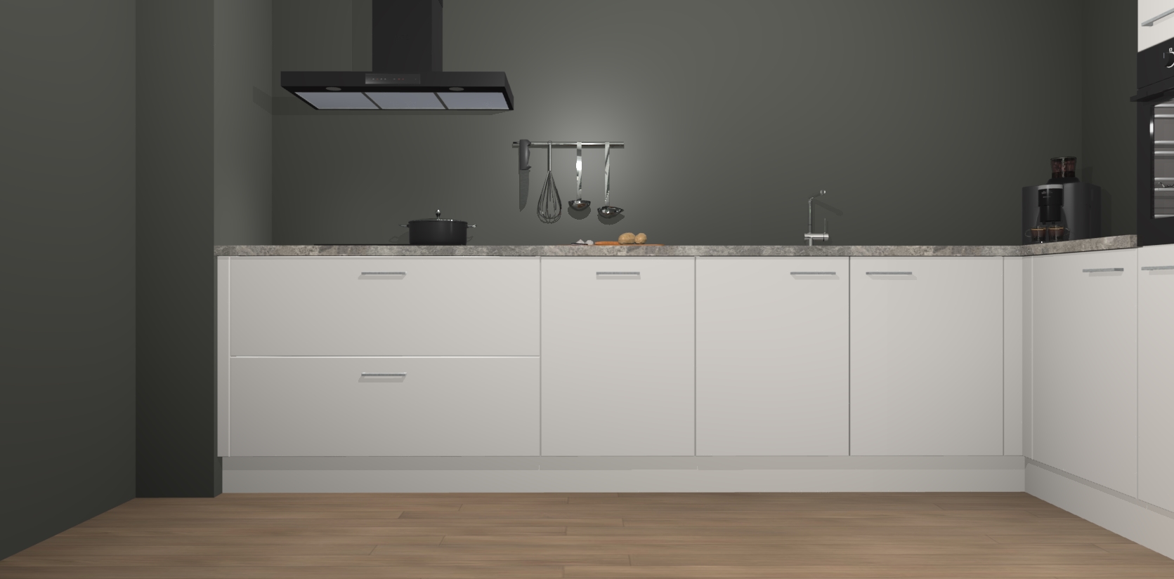 Welkom bij de Zijdegrijze keuken Portland. Deze prachtige keuken zal de komende jaren het middelpunt van de belangstelling in uw huis zijn. Uitgerust met vijf inbouwapparaten komt u nooit kookgereedschap tekort. Bovendien geeft de warme houtlook elke ruimte een uitnodigende en tijdloze uitstraling.