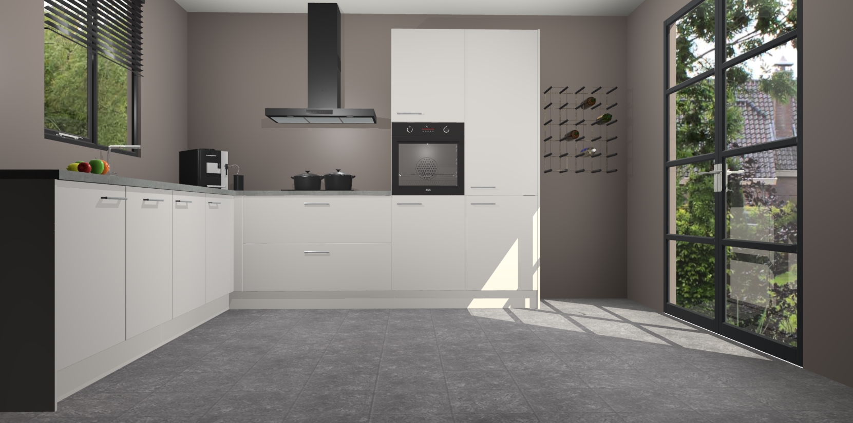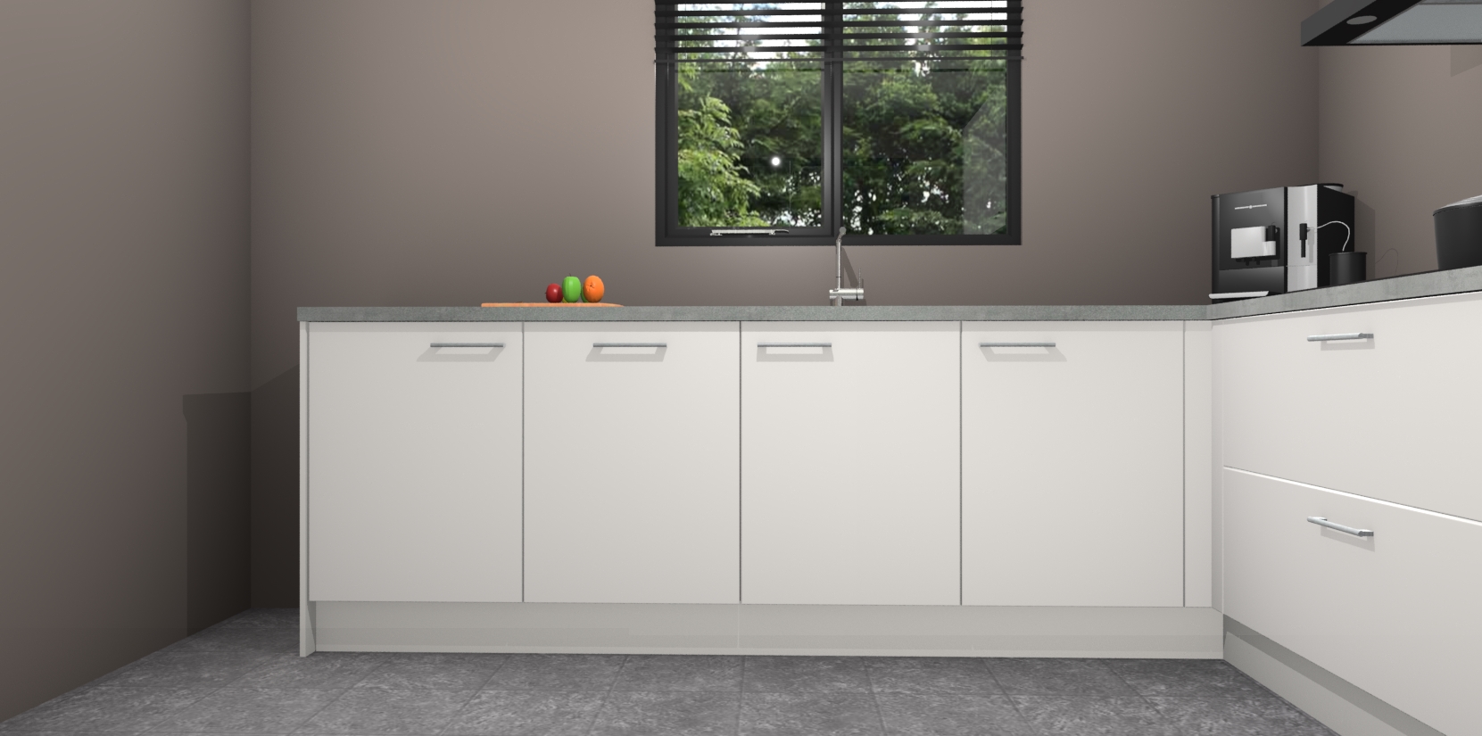 De Zijdegrijze keuken Porto heeft 5 ingebouwde apparaten - een oven, inductiekookplaat, afzuigkap, vaatwasser en koelkast - waarmee u in een handomdraai heerlijke gerechten bereidt. Soft-close deuren zorgen voor nog meer functionaliteit en gemak. En dit alles voor een onverslaanbaar vaste prijs. En als u nu bestelt, duurt de levering maar 7 weken! Wat nog ongelooflijker is, is dat onze kasten voor gemonteerd worden geleverd.
