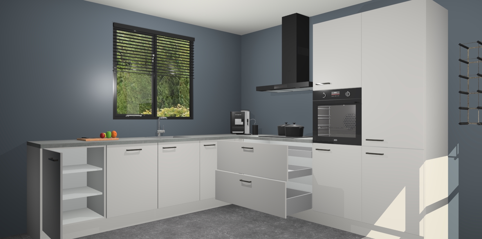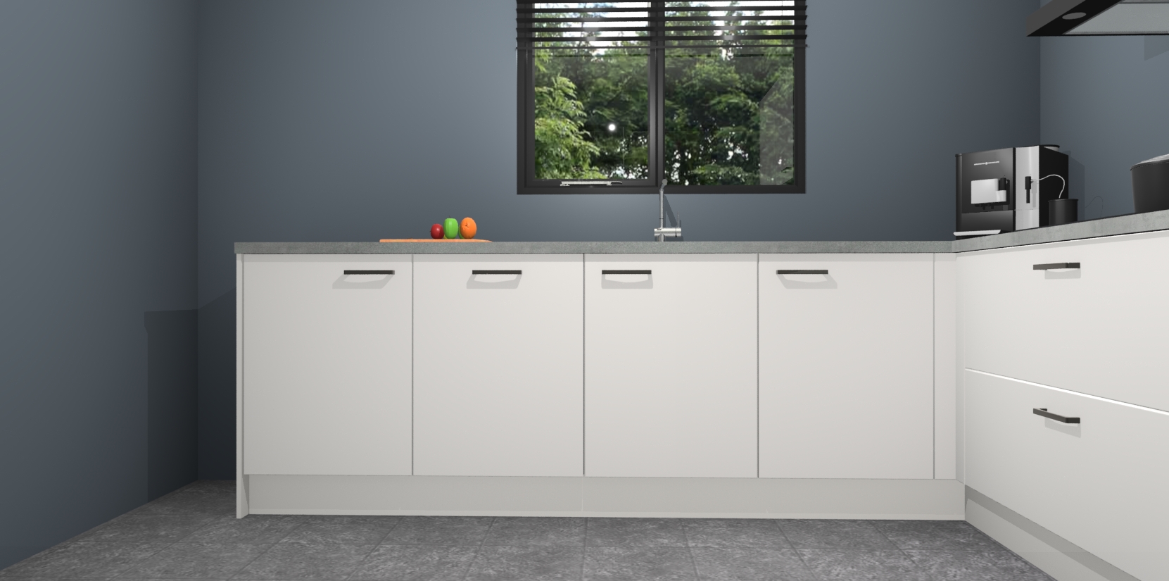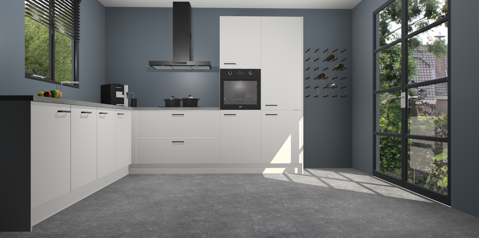 De Zijdegrijze keuken Porto heeft 5 ingebouwde apparaten - een oven, inductiekookplaat, afzuigkap, vaatwasser en koelkast - waarmee u in een handomdraai heerlijke gerechten bereidt. Soft-close deuren zorgen voor nog meer functionaliteit en gemak. En dit alles voor een onverslaanbaar vaste prijs. En als u nu bestelt, duurt de levering maar 7 weken! Wat nog ongelooflijker is, is dat onze kasten voor gemonteerd worden geleverd.