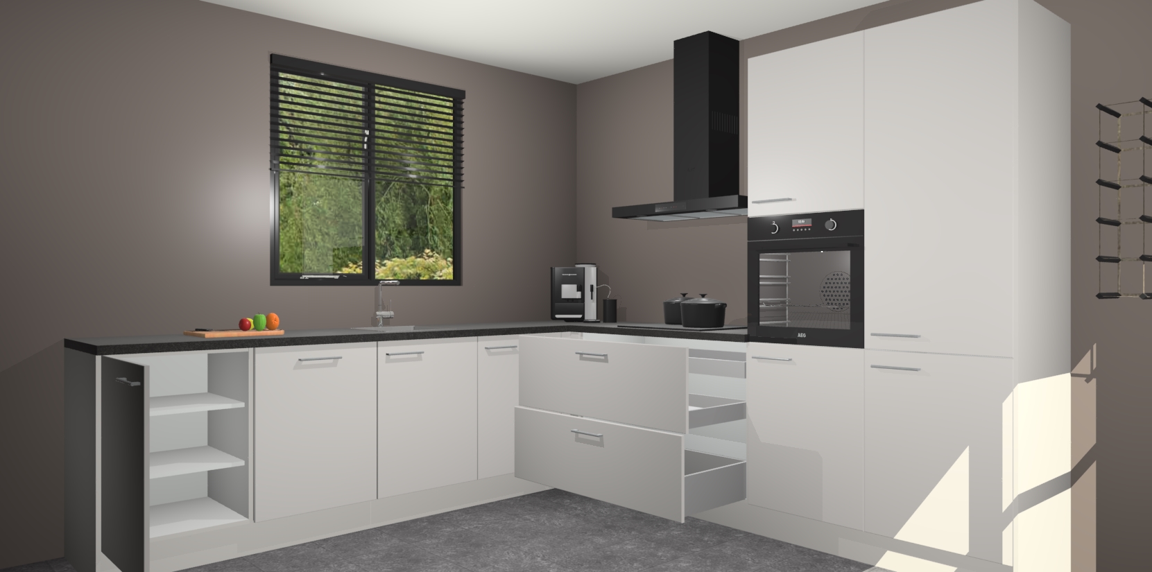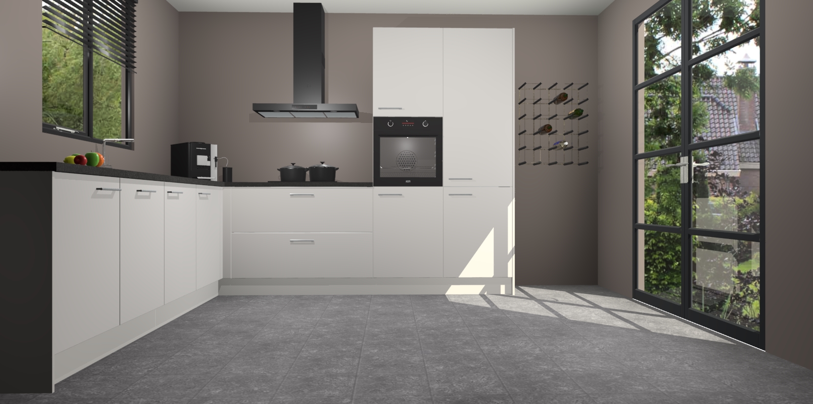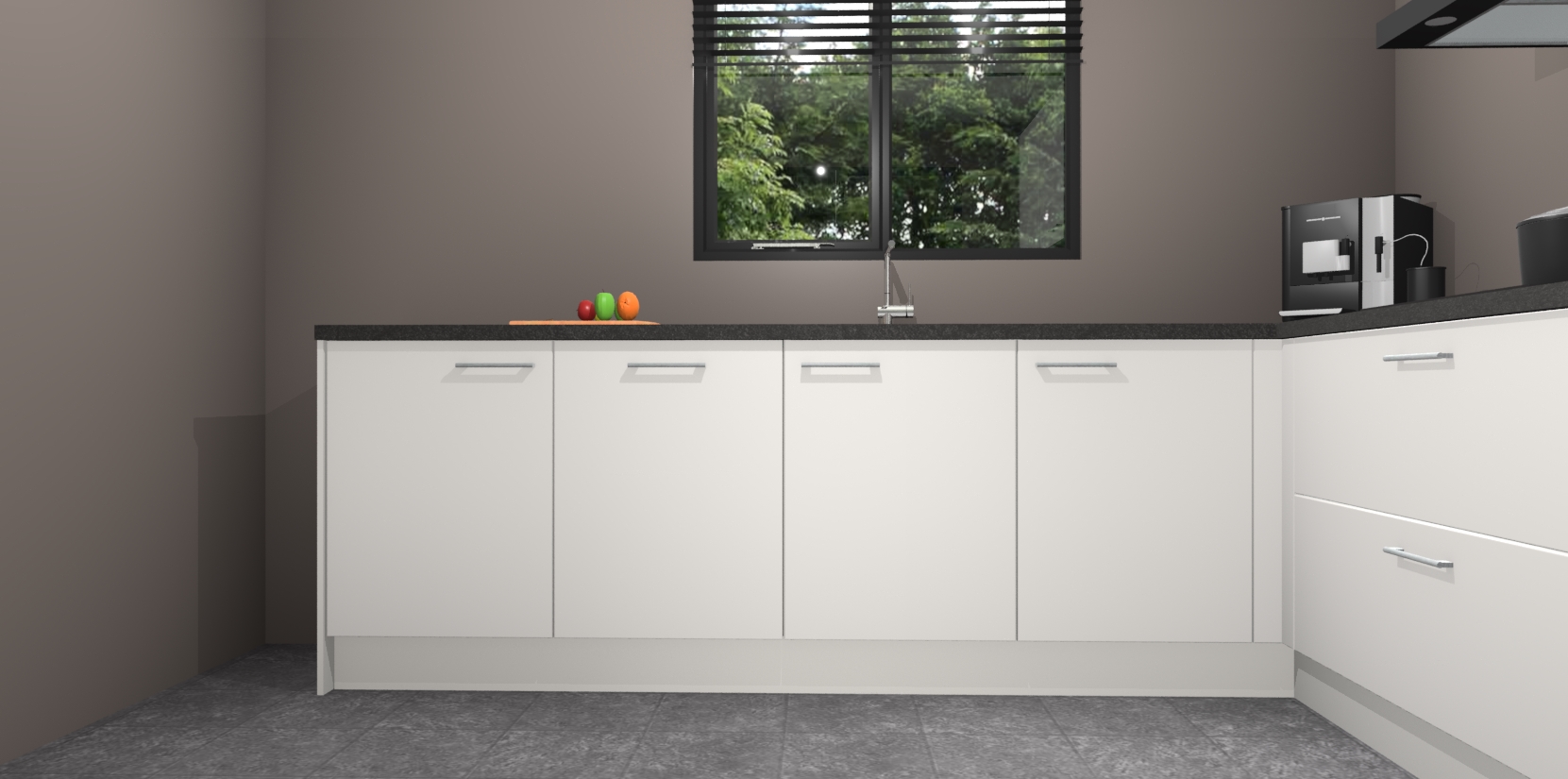 De Zijdegrijze keuken Porto heeft 5 ingebouwde apparaten - een oven, inductiekookplaat, afzuigkap, vaatwasser en koelkast - waarmee u in een handomdraai heerlijke gerechten bereidt. Soft-close deuren zorgen voor nog meer functionaliteit en gemak. En dit alles voor een onverslaanbaar vaste prijs. En als u nu bestelt, duurt de levering maar 7 weken! Wat nog ongelooflijker is, is dat onze kasten voor gemonteerd worden geleverd.