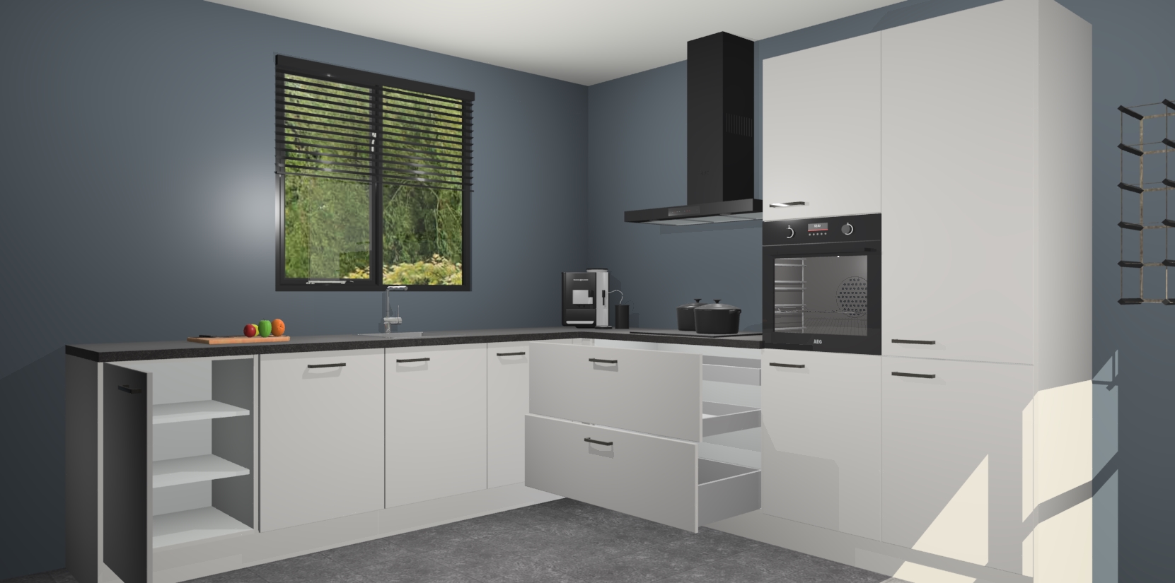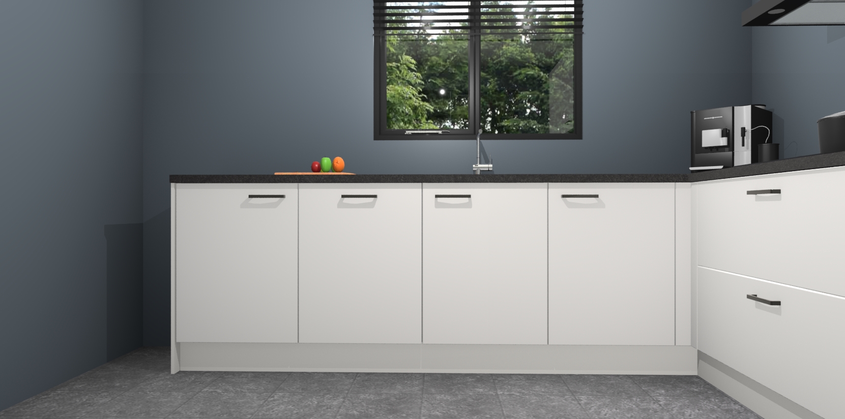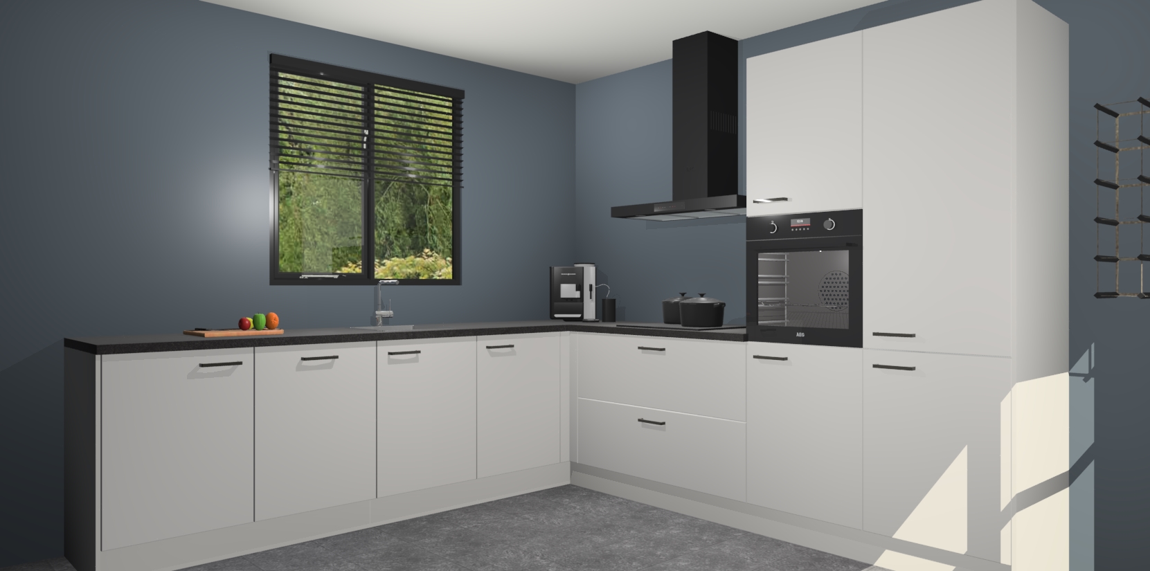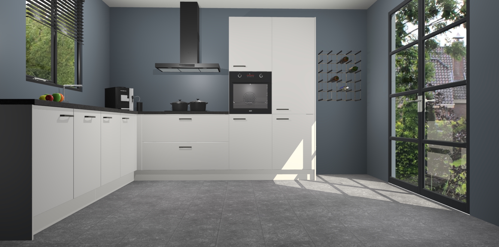 De Zijdegrijze keuken Porto heeft 5 ingebouwde apparaten - een oven, inductiekookplaat, afzuigkap, vaatwasser en koelkast - waarmee u in een handomdraai heerlijke gerechten bereidt. Soft-close deuren zorgen voor nog meer functionaliteit en gemak. En dit alles voor een onverslaanbaar vaste prijs. En als u nu bestelt, duurt de levering maar 7 weken! Wat nog ongelooflijker is, is dat onze kasten voor gemonteerd worden geleverd.