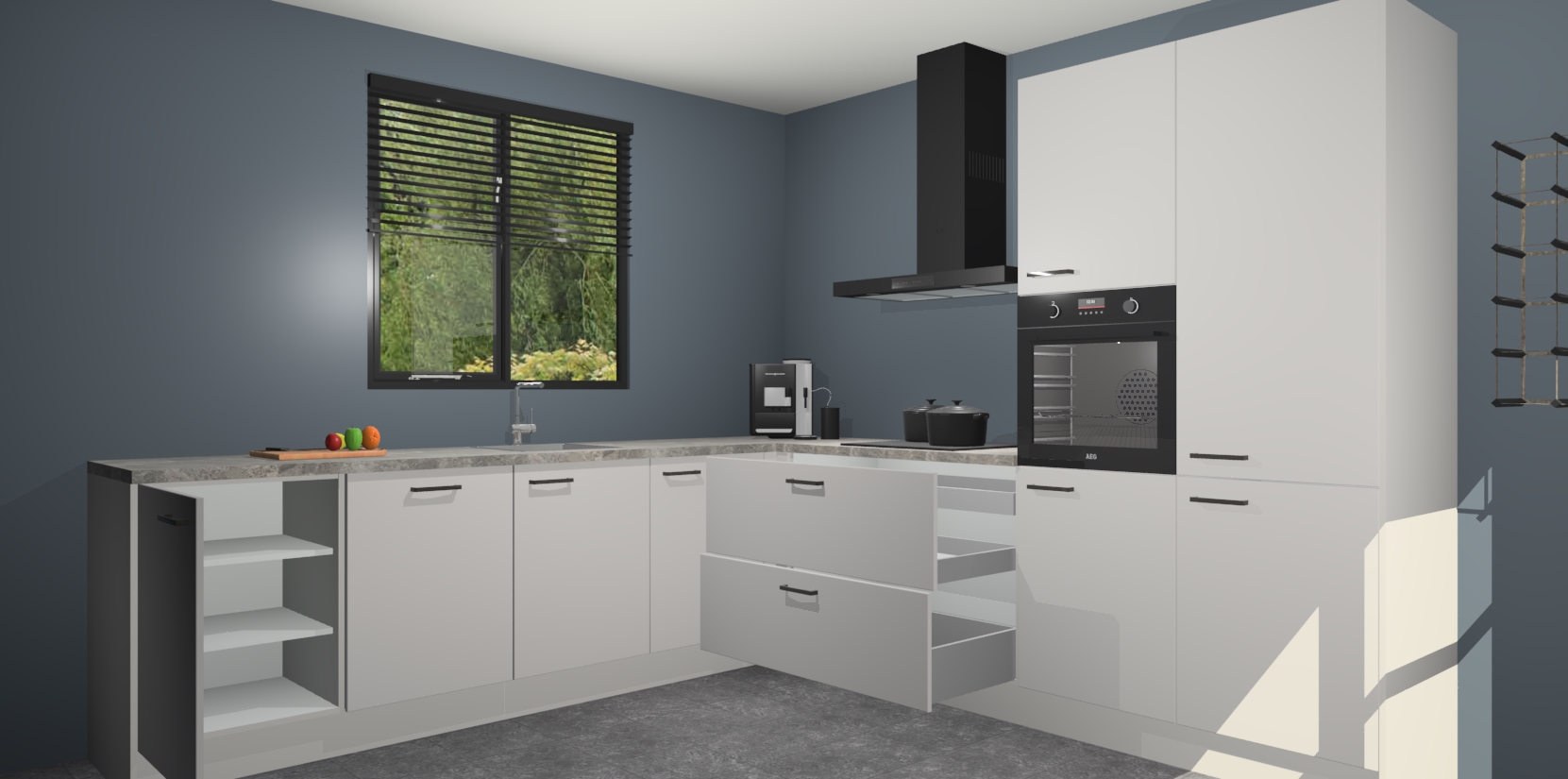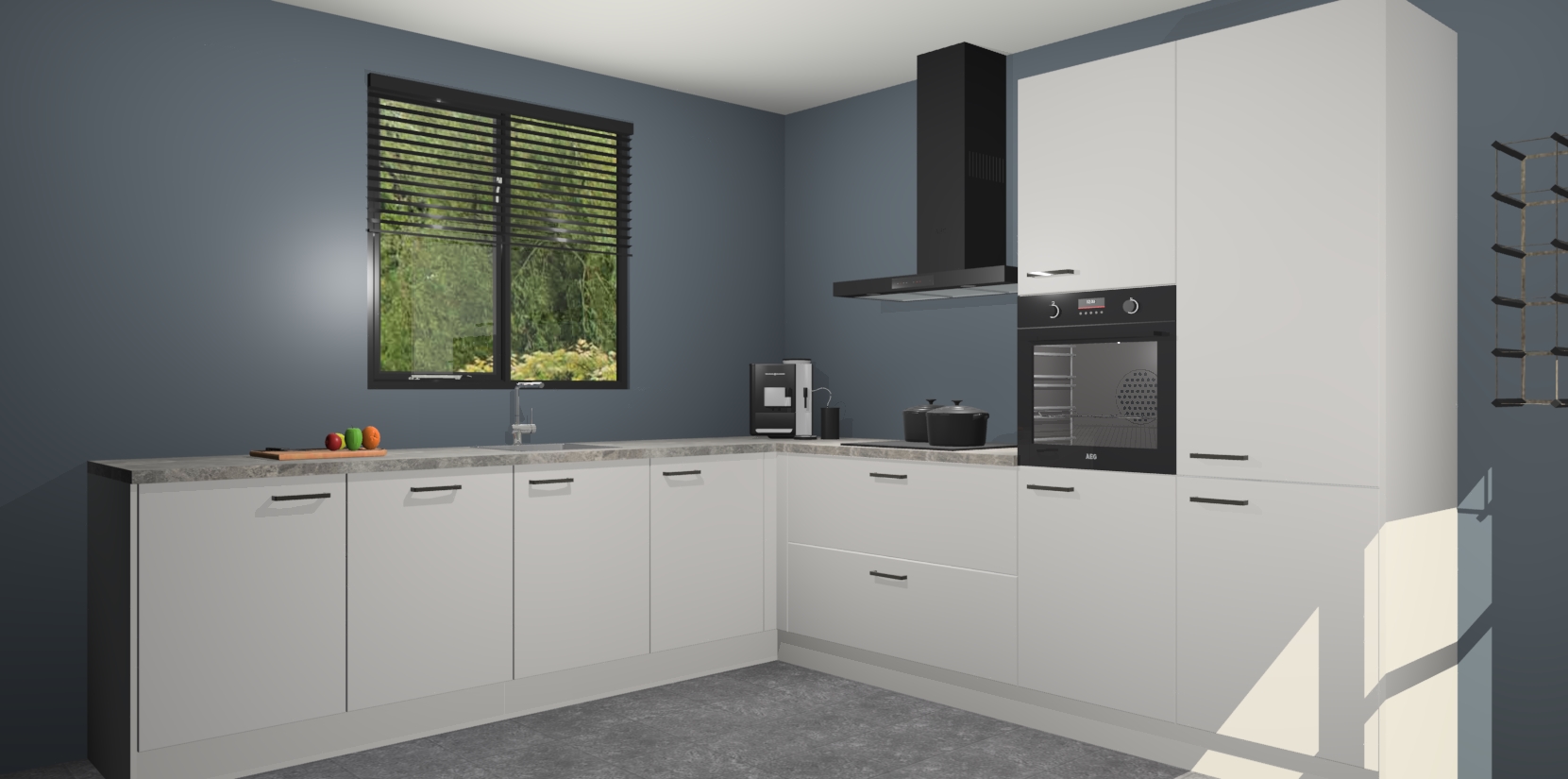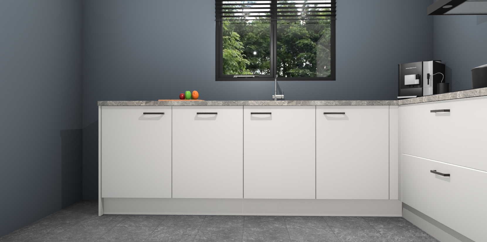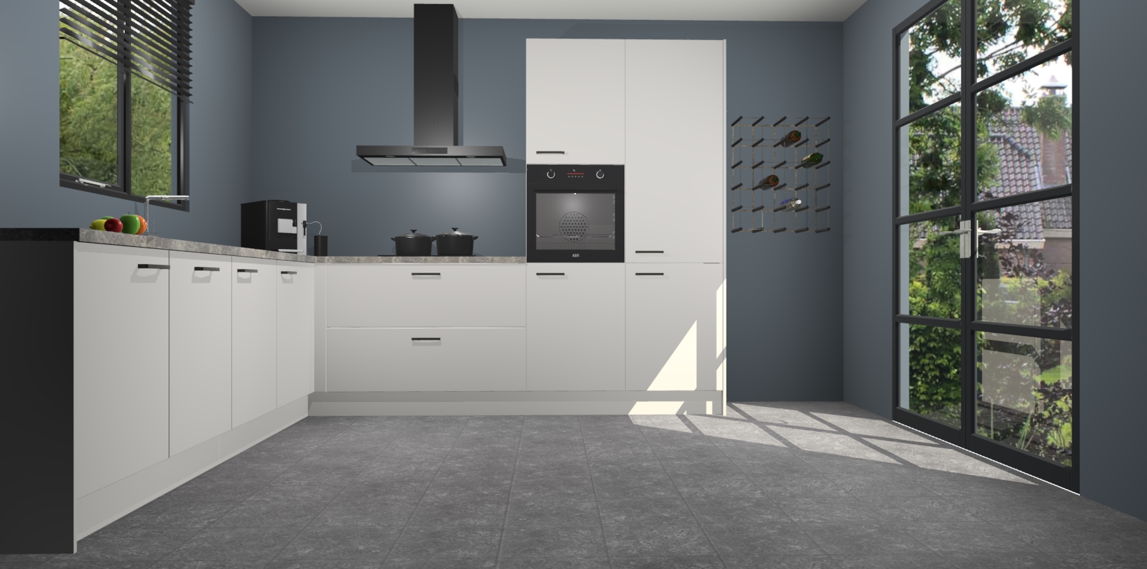 De Zijdegrijze keuken Porto heeft 5 ingebouwde apparaten - een oven, inductiekookplaat, afzuigkap, vaatwasser en koelkast - waarmee u in een handomdraai heerlijke gerechten bereidt. Soft-close deuren zorgen voor nog meer functionaliteit en gemak. En dit alles voor een onverslaanbaar vaste prijs. En als u nu bestelt, duurt de levering maar 7 weken! Wat nog ongelooflijker is, is dat onze kasten voor gemonteerd worden geleverd.