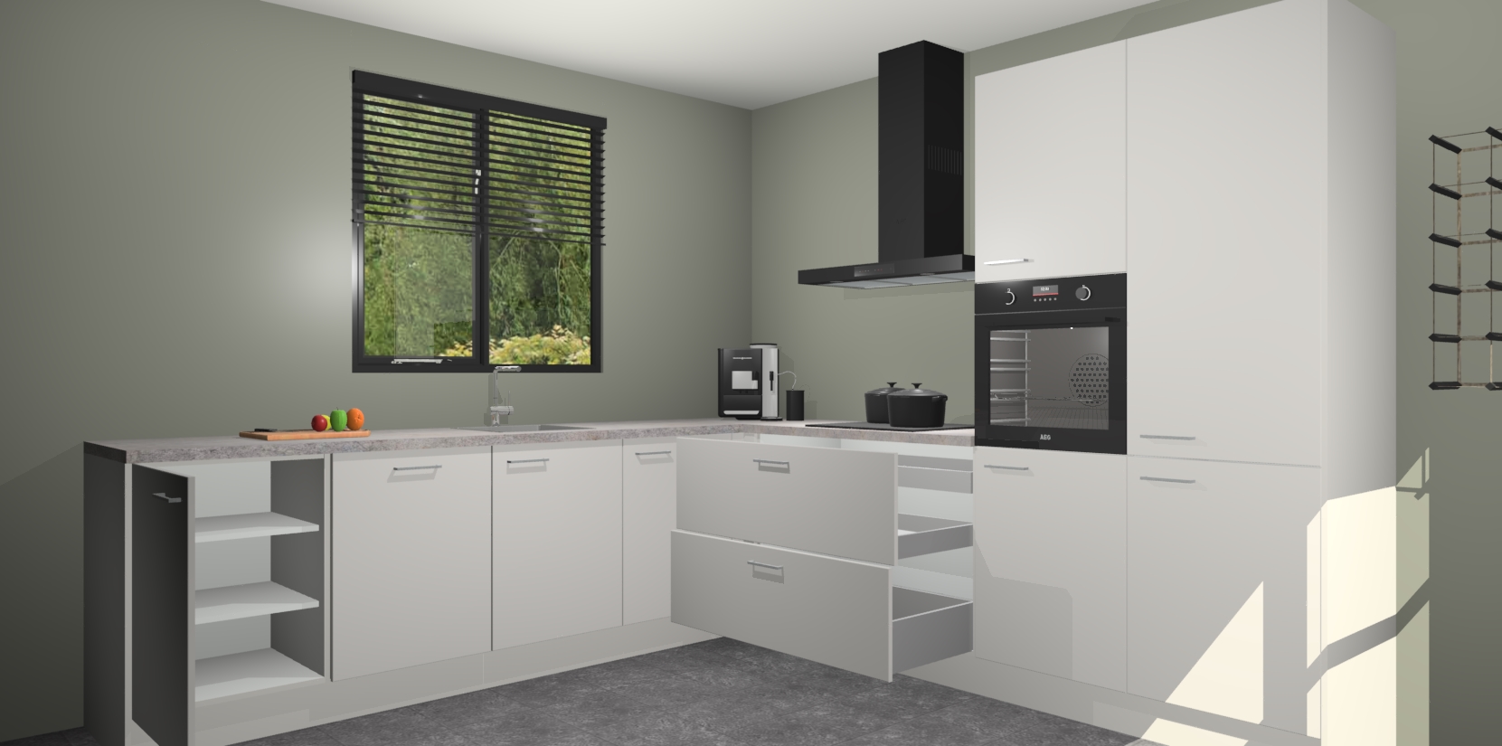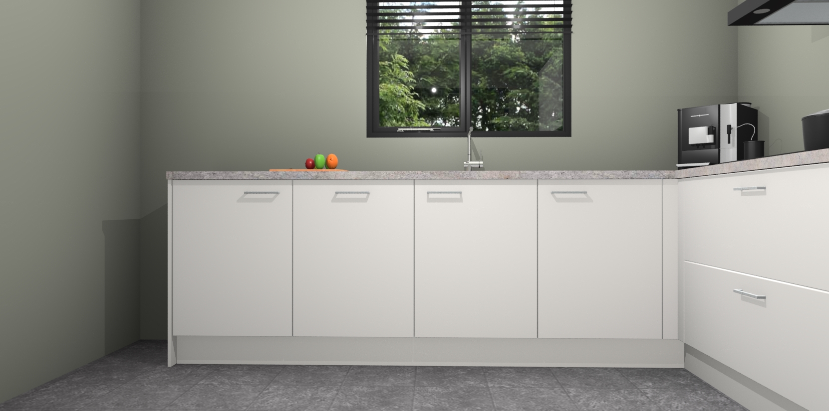 De Zijdegrijze keuken Porto heeft 5 ingebouwde apparaten - een oven, inductiekookplaat, afzuigkap, vaatwasser en koelkast - waarmee u in een handomdraai heerlijke gerechten bereidt. Soft-close deuren zorgen voor nog meer functionaliteit en gemak. En dit alles voor een onverslaanbaar vaste prijs. En als u nu bestelt, duurt de levering maar 7 weken! Wat nog ongelooflijker is, is dat onze kasten voor gemonteerd worden geleverd.
