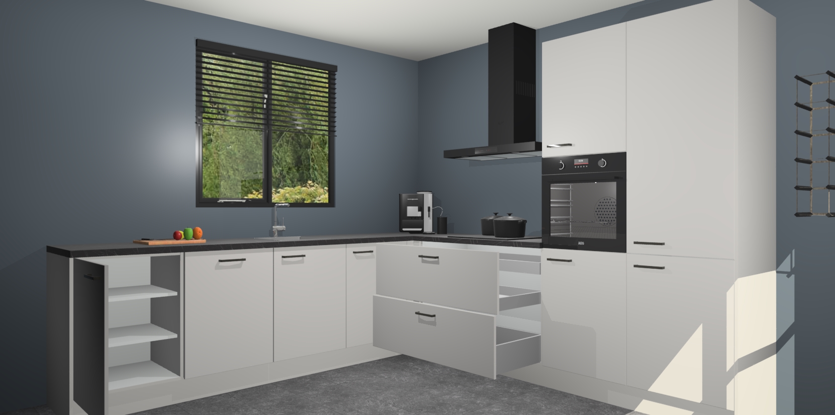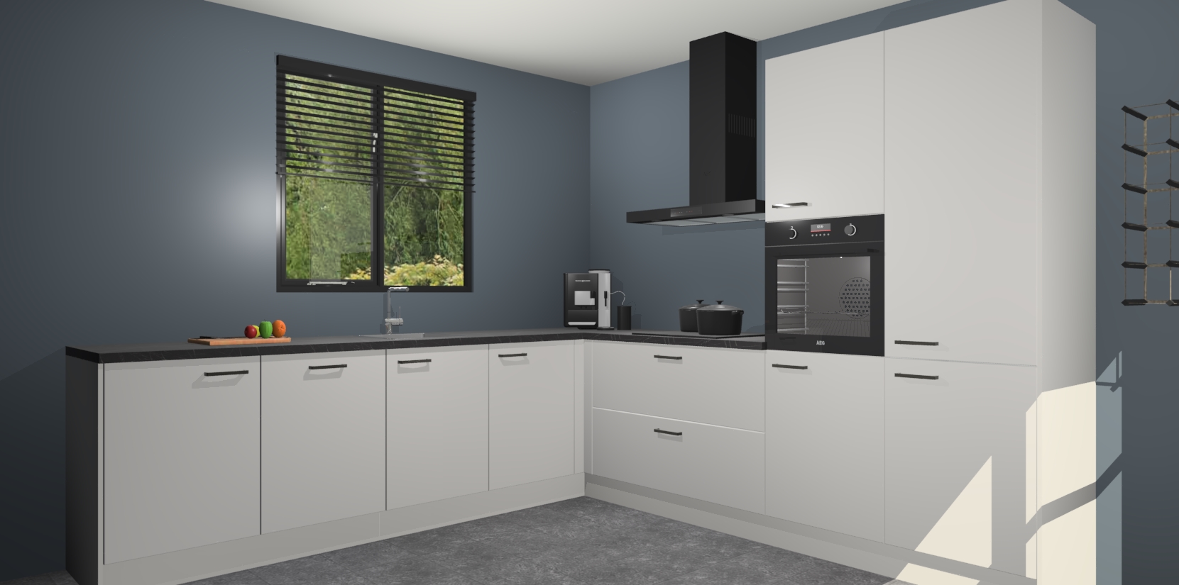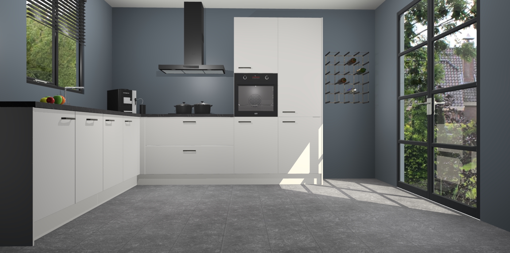 De Zijdegrijze keuken Porto heeft 5 ingebouwde apparaten - een oven, inductiekookplaat, afzuigkap, vaatwasser en koelkast - waarmee u in een handomdraai heerlijke gerechten bereidt. Soft-close deuren zorgen voor nog meer functionaliteit en gemak. En dit alles voor een onverslaanbaar vaste prijs. En als u nu bestelt, duurt de levering maar 7 weken! Wat nog ongelooflijker is, is dat onze kasten voor gemonteerd worden geleverd.
