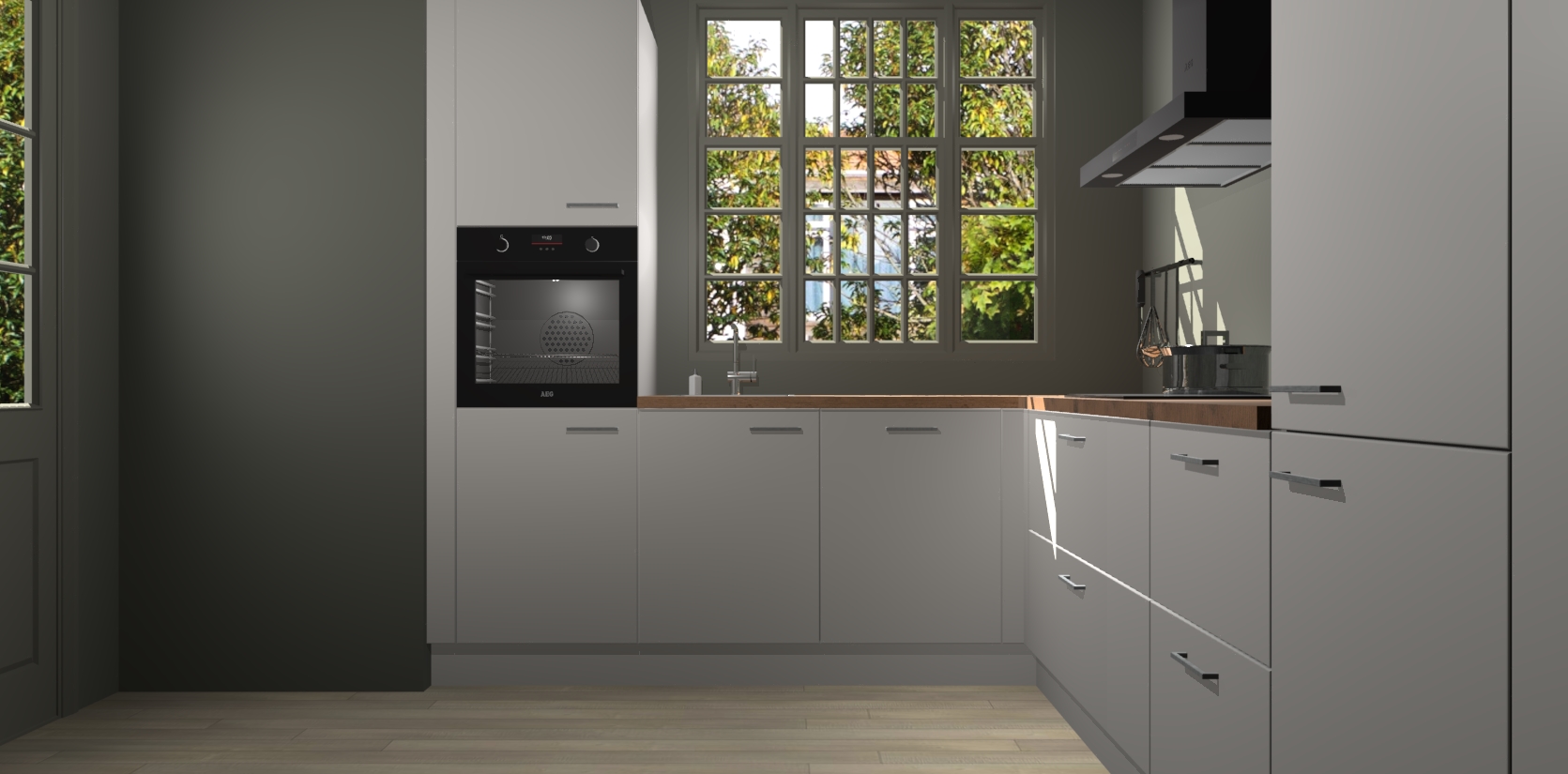 Met een modern, tijdloos design en ruime opslagruimte, zult u zich in no-time thuis voelen in uw nieuwe keuken. Uw leven wordt eenvoudiger met de soft-close deuren die voor het ultieme stille comfort zorgen - geen geluid dat u stoort terwijl u kookt. Ook is de keuken voorzien van 5 ingebouwde apparaten: een oven, inductie kookplaat, afzuigkap, vaatwasser en koelkast. Deze kunnen gemakkelijk na bestelling worden bijgewerkt naar AEG - waardoor uw luxe ervaring compleet is.