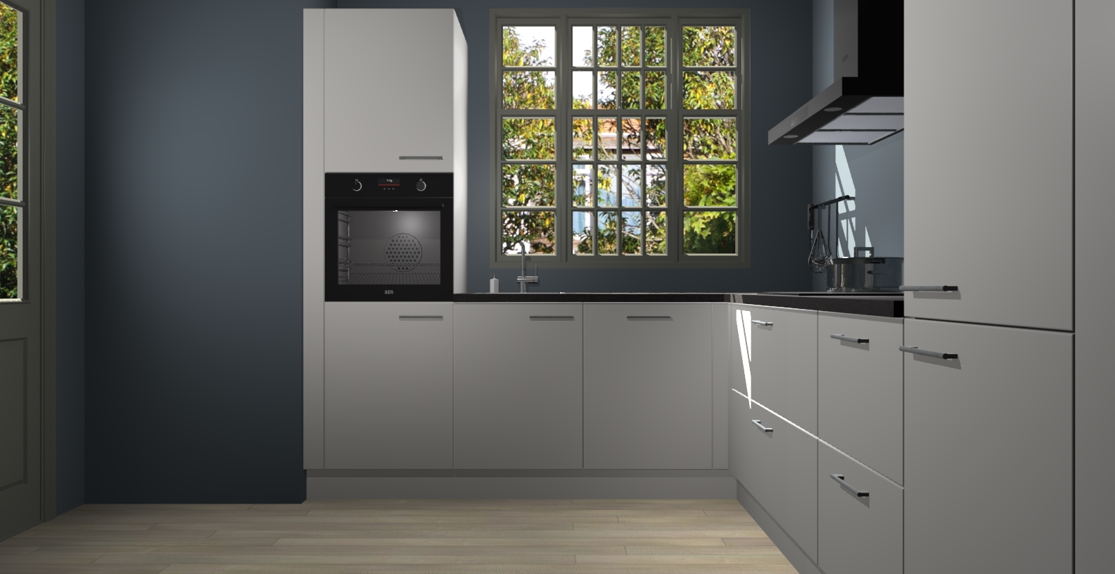 Met een modern, tijdloos design en ruime opslagruimte, zult u zich in no-time thuis voelen in uw nieuwe keuken. Uw leven wordt eenvoudiger met de soft-close deuren die voor het ultieme stille comfort zorgen - geen geluid dat u stoort terwijl u kookt. Ook is de keuken voorzien van 5 ingebouwde apparaten: een oven, inductie kookplaat, afzuigkap, vaatwasser en koelkast. Deze kunnen gemakkelijk na bestelling worden bijgewerkt naar AEG - waardoor uw luxe ervaring compleet is.