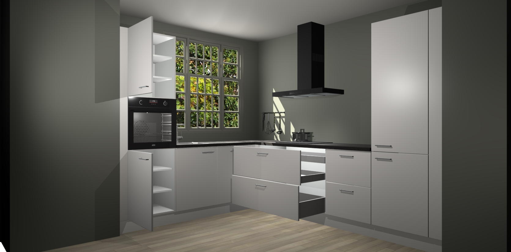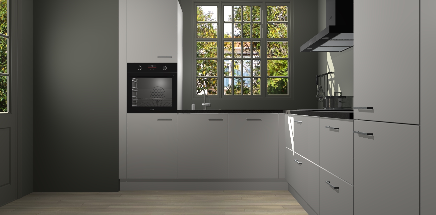 Met een modern, tijdloos design en ruime opslagruimte, zult u zich in no-time thuis voelen in uw nieuwe keuken. Uw leven wordt eenvoudiger met de soft-close deuren die voor het ultieme stille comfort zorgen - geen geluid dat u stoort terwijl u kookt. Ook is de keuken voorzien van 5 ingebouwde apparaten: een oven, inductie kookplaat, afzuigkap, vaatwasser en koelkast. Deze kunnen gemakkelijk na bestelling worden bijgewerkt naar AEG - waardoor uw luxe ervaring compleet is.