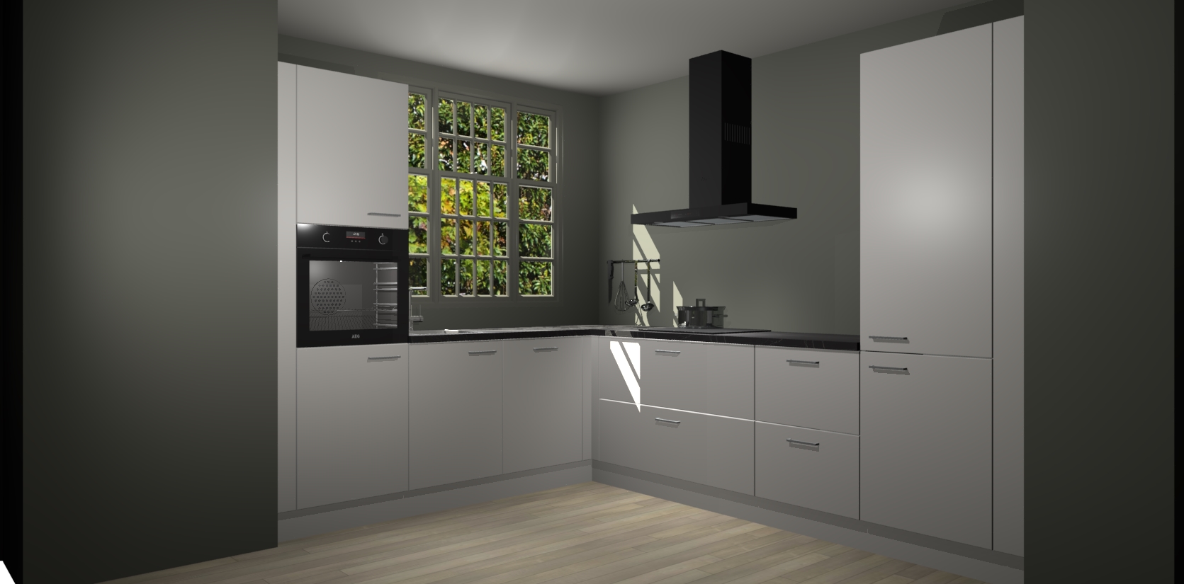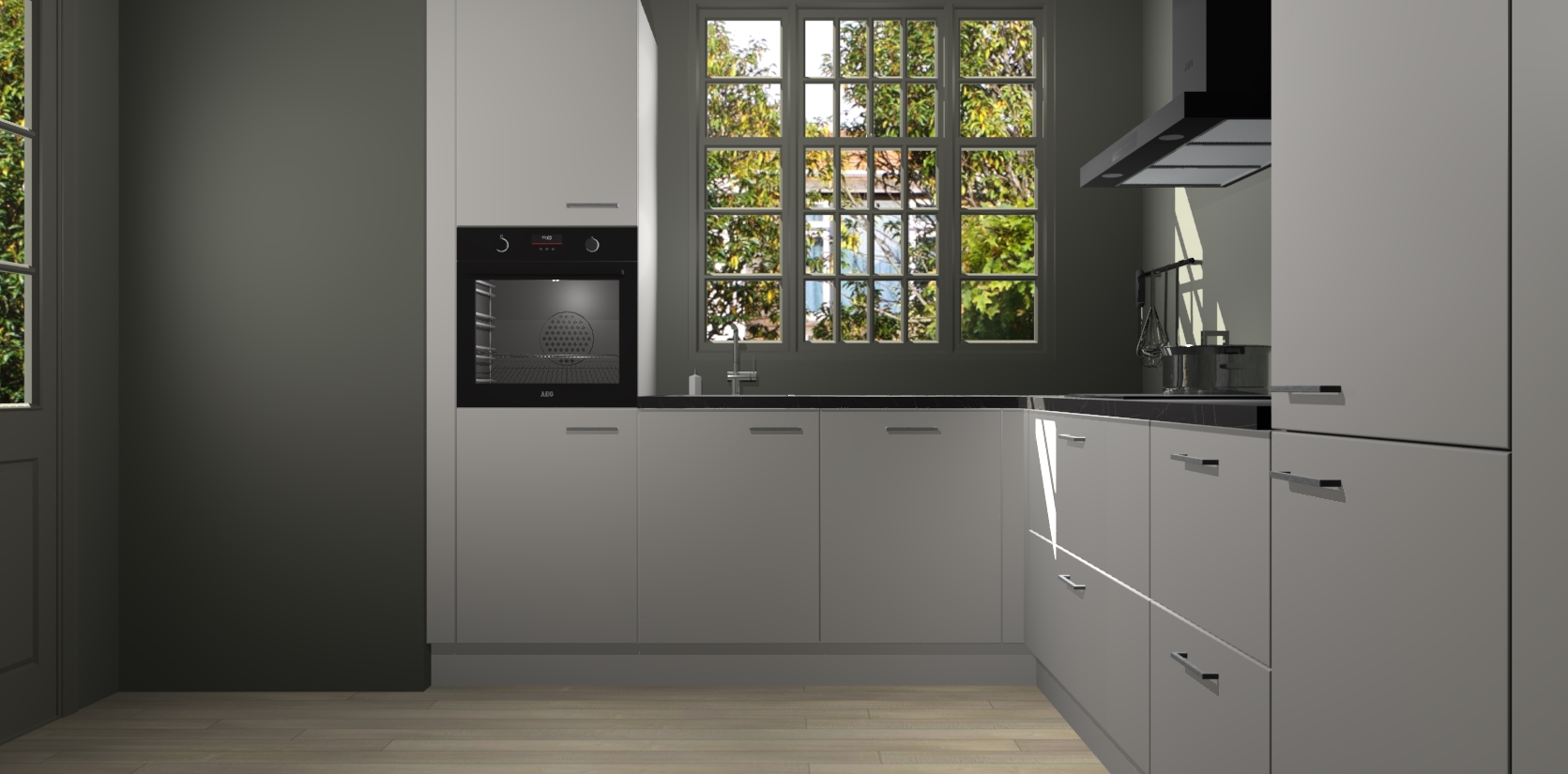 Met een modern, tijdloos design en ruime opslagruimte, zult u zich in no-time thuis voelen in uw nieuwe keuken. Uw leven wordt eenvoudiger met de soft-close deuren die voor het ultieme stille comfort zorgen - geen geluid dat u stoort terwijl u kookt. Ook is de keuken voorzien van 5 ingebouwde apparaten: een oven, inductie kookplaat, afzuigkap, vaatwasser en koelkast. Deze kunnen gemakkelijk na bestelling worden bijgewerkt naar AEG - waardoor uw luxe ervaring compleet is.