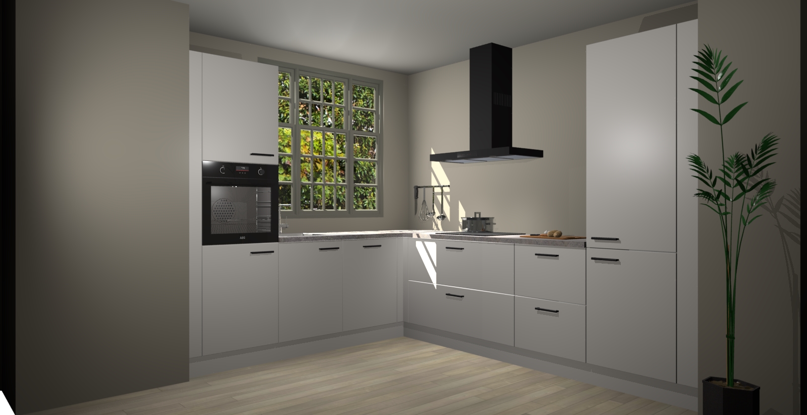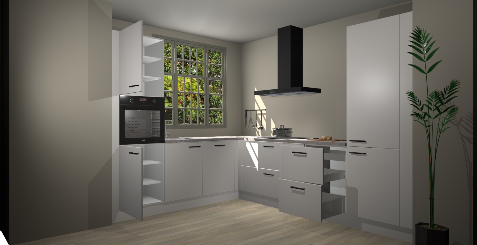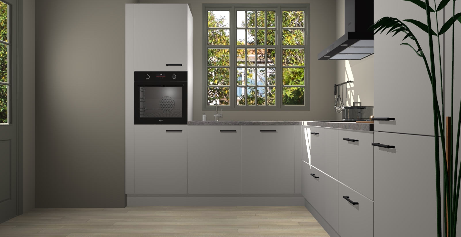 Met een modern, tijdloos design en ruime opslagruimte, zult u zich in no-time thuis voelen in uw nieuwe keuken. Uw leven wordt eenvoudiger met de soft-close deuren die voor het ultieme stille comfort zorgen - geen geluid dat u stoort terwijl u kookt. Ook is de keuken voorzien van 5 ingebouwde apparaten: een oven, inductie kookplaat, afzuigkap, vaatwasser en koelkast. Deze kunnen gemakkelijk na bestelling worden bijgewerkt naar AEG - waardoor uw luxe ervaring compleet is.