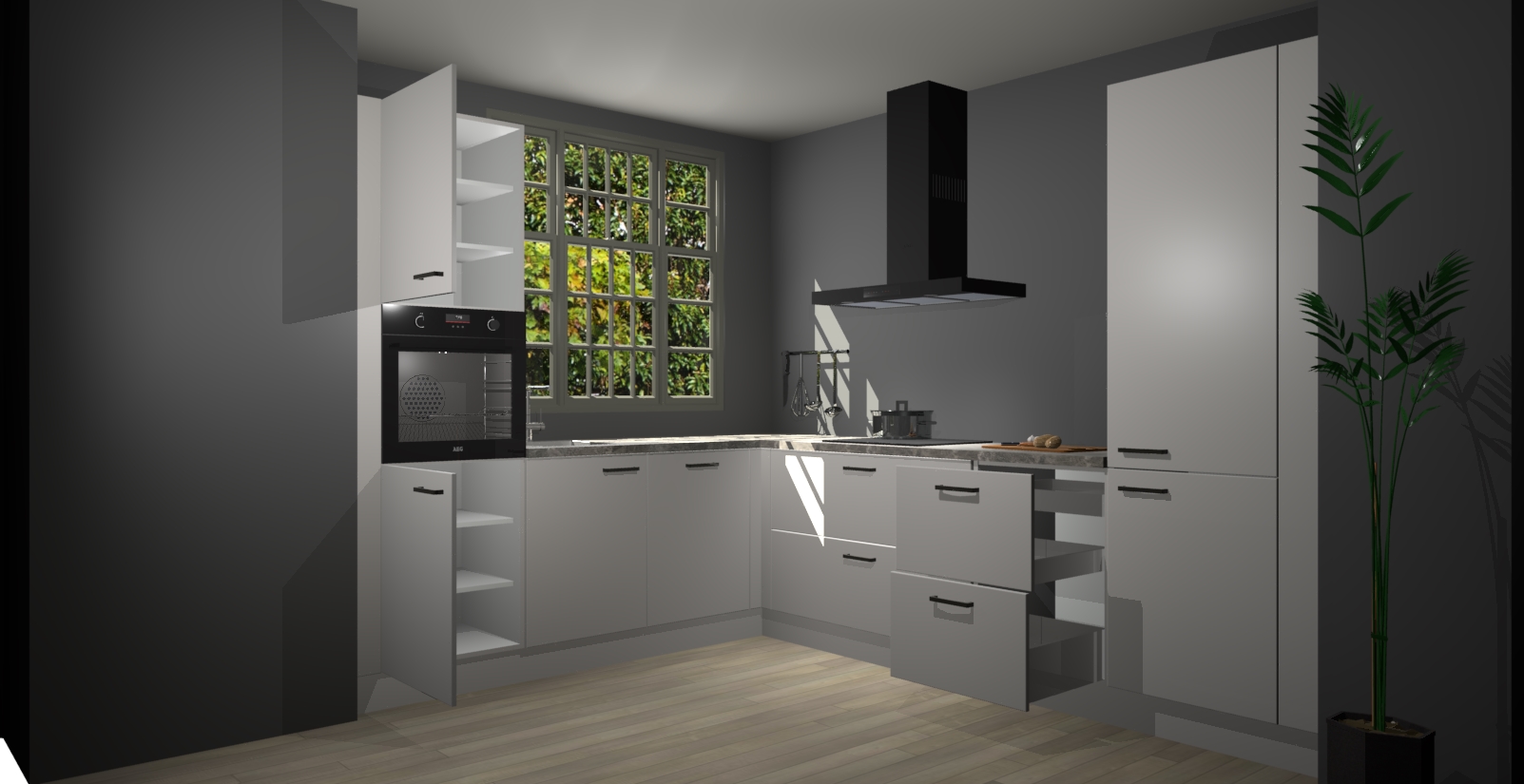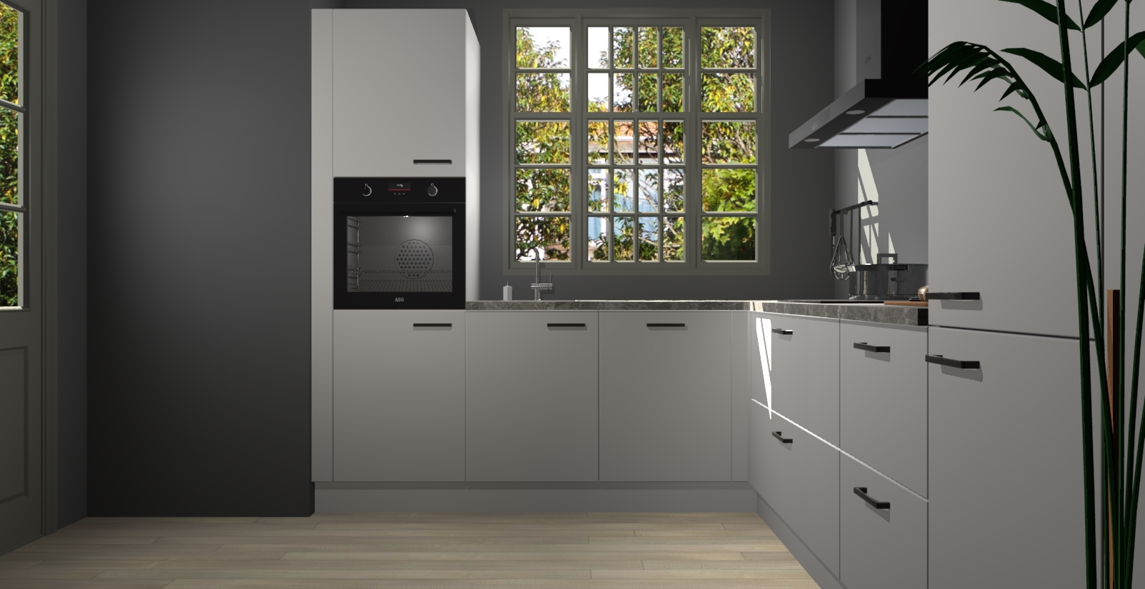 Met een modern, tijdloos design en ruime opslagruimte, zult u zich in no-time thuis voelen in uw nieuwe keuken. Uw leven wordt eenvoudiger met de soft-close deuren die voor het ultieme stille comfort zorgen - geen geluid dat u stoort terwijl u kookt. Ook is de keuken voorzien van 5 ingebouwde apparaten: een oven, inductie kookplaat, afzuigkap, vaatwasser en koelkast. Deze kunnen gemakkelijk na bestelling worden bijgewerkt naar AEG - waardoor uw luxe ervaring compleet is.