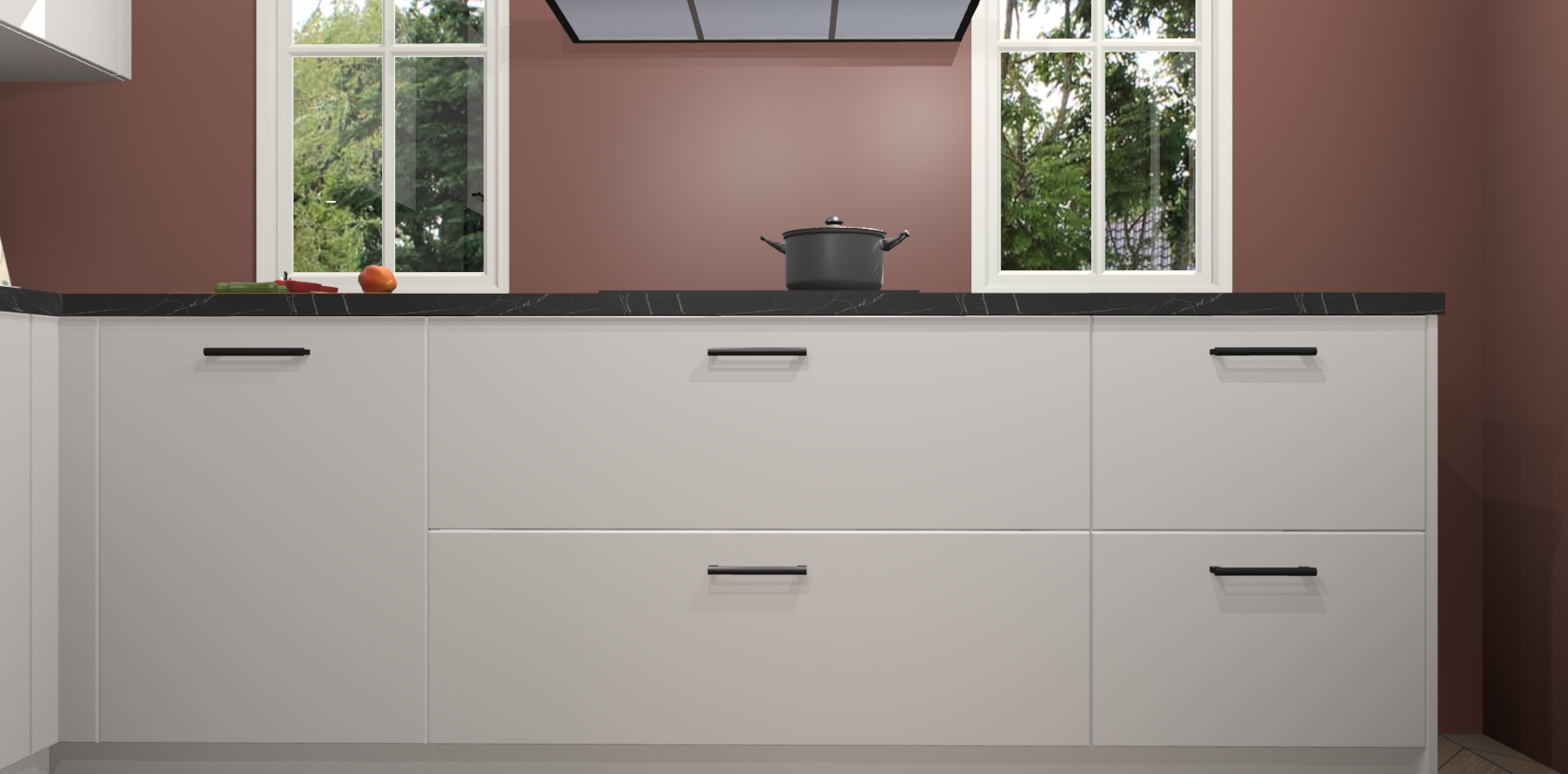 In deze box zijn alle kleuren verzameld van de deuren en werkbladen. Vraag de gratis kleurenbox aan en kijk thuis rustig verder!