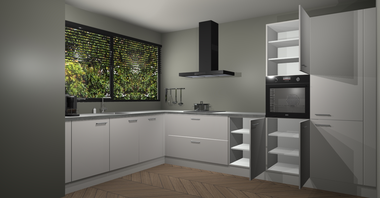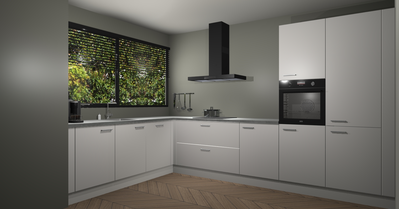 Met een modern, tijdloos design en ruime opslagruimte, zult u zich in no-time thuis voelen in uw nieuwe keuken. Uw leven wordt eenvoudiger met de soft-close deuren die voor het ultieme stille comfort zorgen - geen geluid dat u stoort terwijl u kookt. Ook is de keuken voorzien van 5 ingebouwde apparaten: een oven, inductie kookplaat, afzuigkap, vaatwasser en koelkast. Deze kunnen gemakkelijk na bestelling worden bijgewerkt naar AEG - waardoor uw luxe ervaring compleet is.