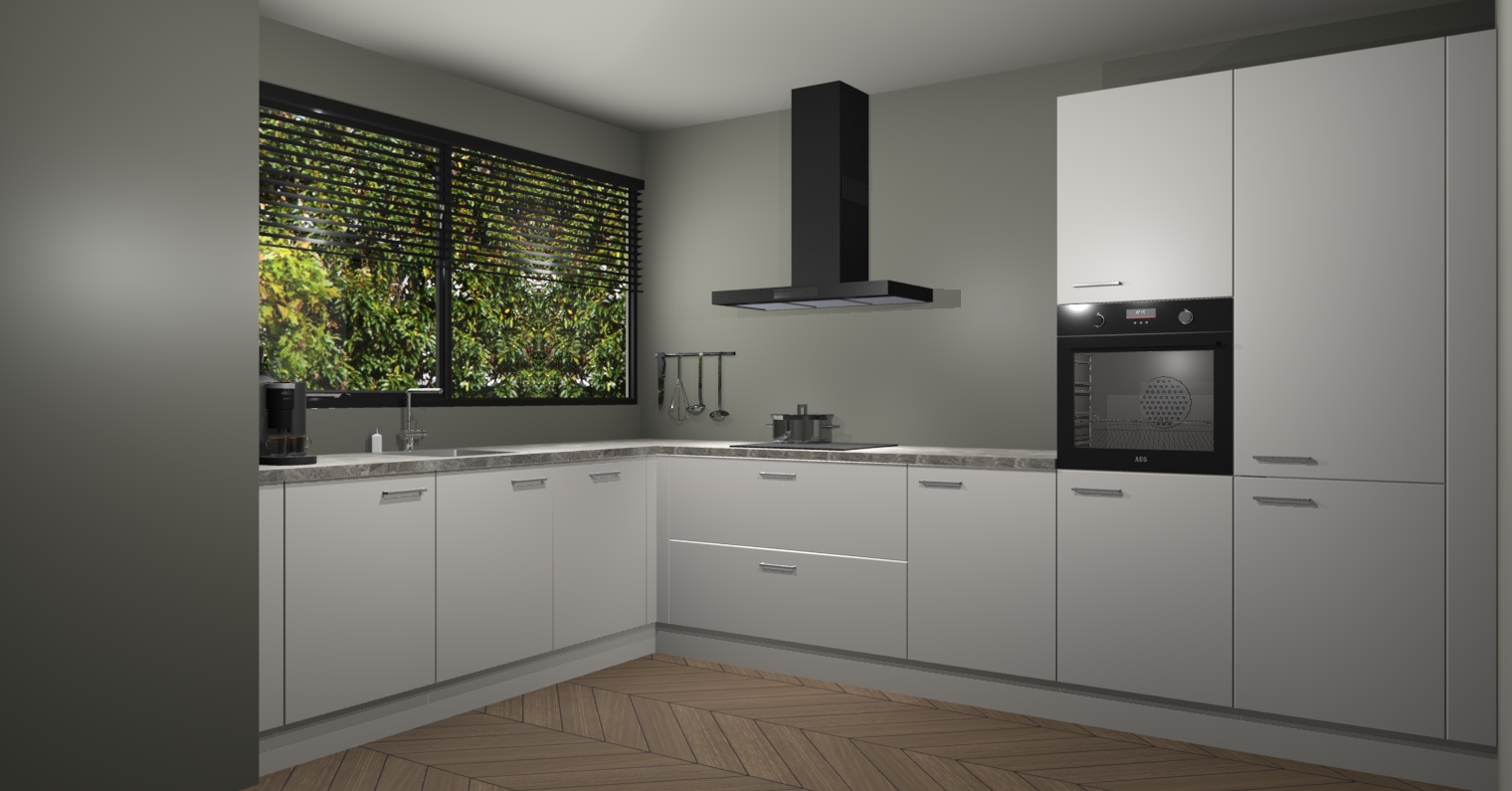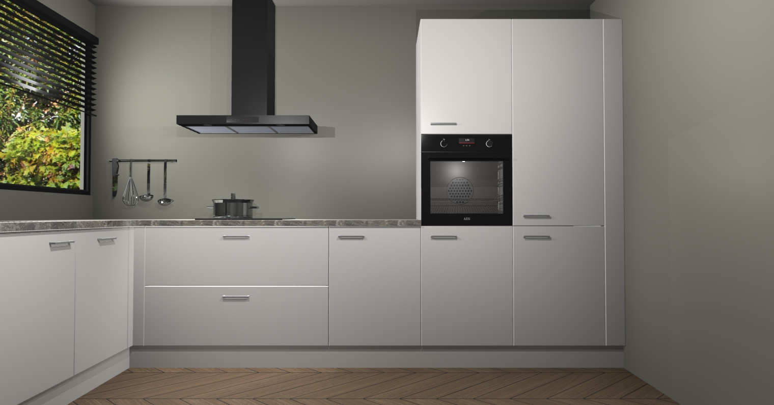 Met een modern, tijdloos design en ruime opslagruimte, zult u zich in no-time thuis voelen in uw nieuwe keuken. Uw leven wordt eenvoudiger met de soft-close deuren die voor het ultieme stille comfort zorgen - geen geluid dat u stoort terwijl u kookt. Ook is de keuken voorzien van 5 ingebouwde apparaten: een oven, inductie kookplaat, afzuigkap, vaatwasser en koelkast. Deze kunnen gemakkelijk na bestelling worden bijgewerkt naar AEG - waardoor uw luxe ervaring compleet is.