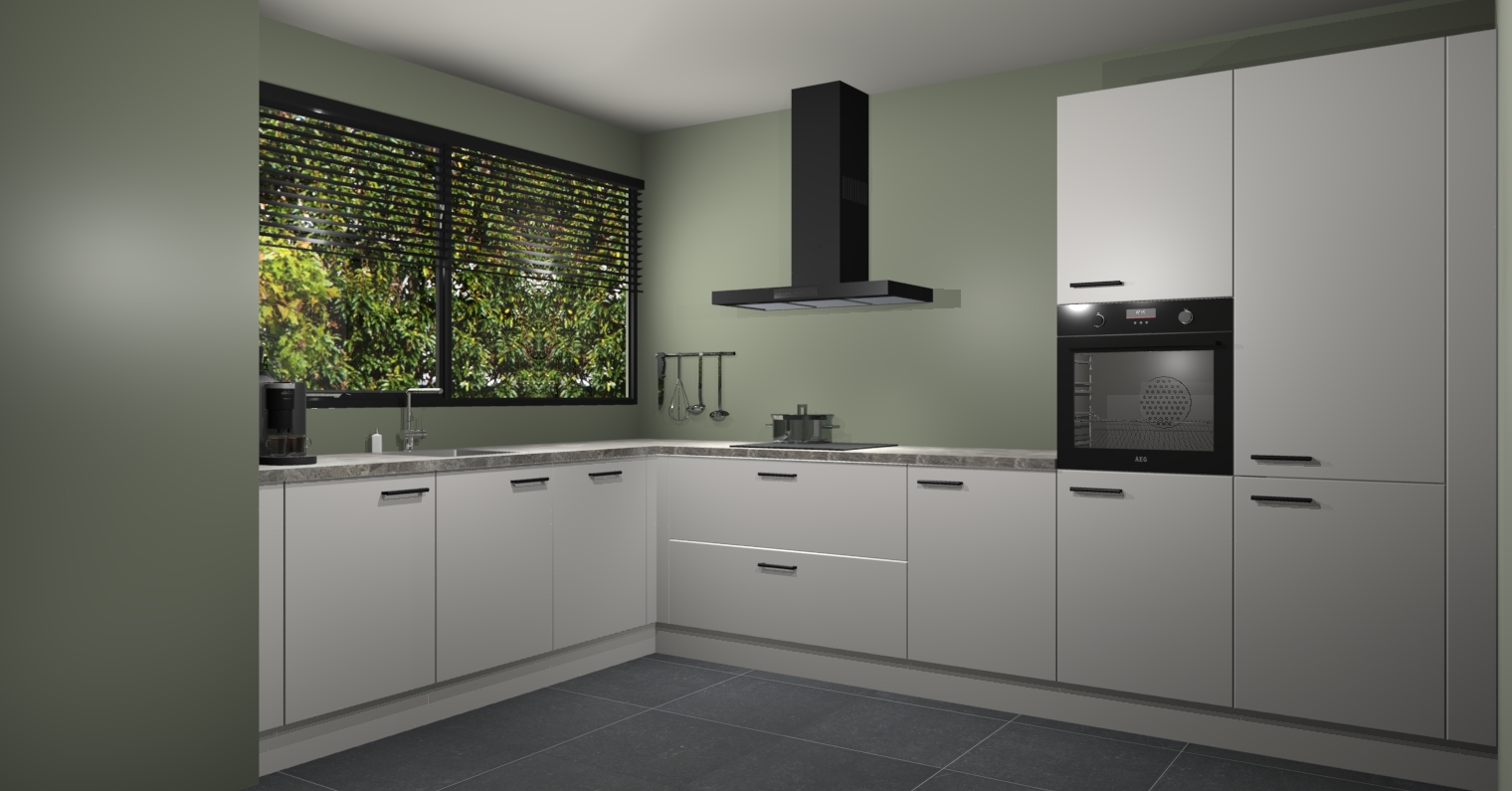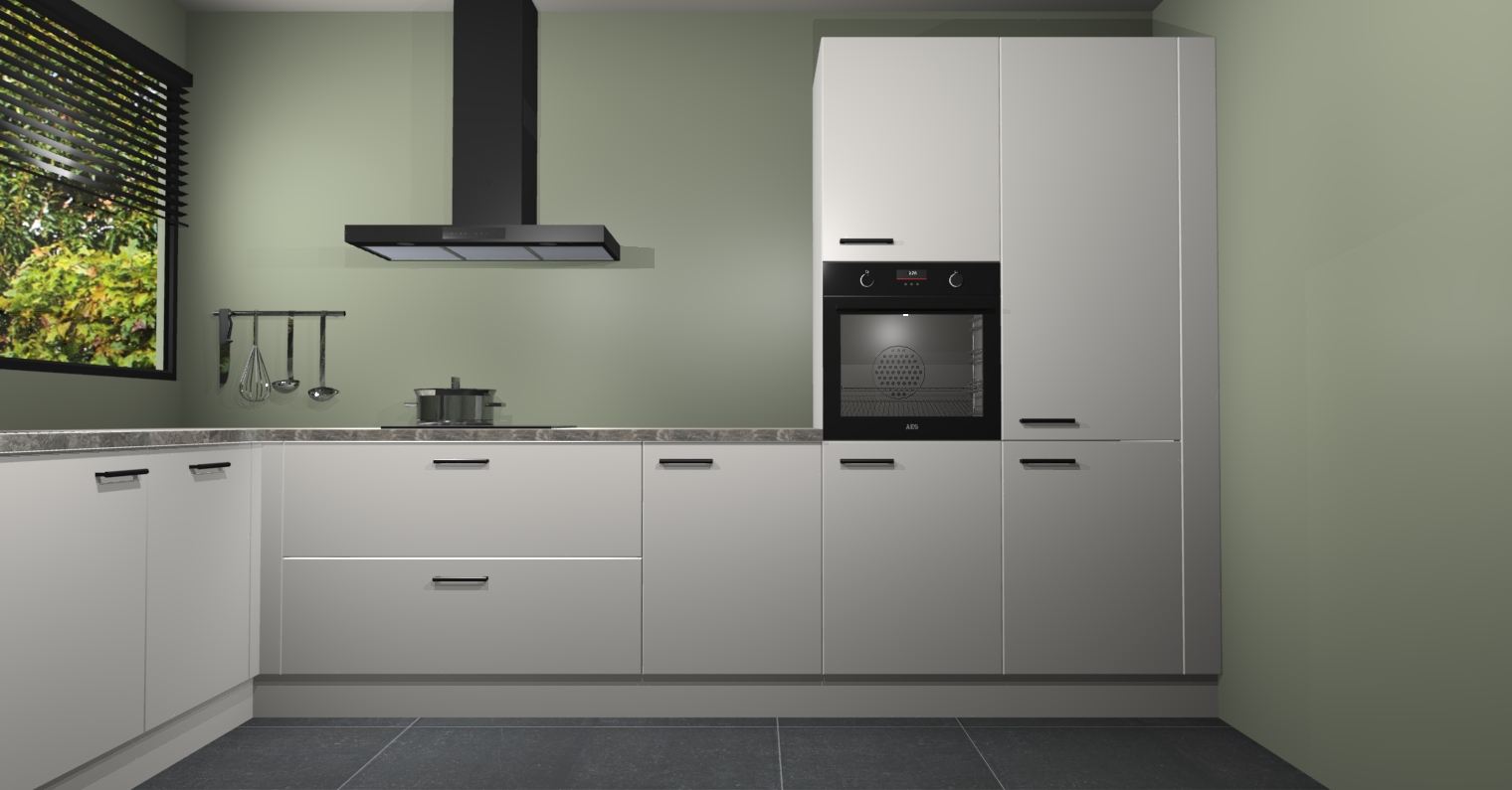 Met een modern, tijdloos design en ruime opslagruimte, zult u zich in no-time thuis voelen in uw nieuwe keuken. Uw leven wordt eenvoudiger met de soft-close deuren die voor het ultieme stille comfort zorgen - geen geluid dat u stoort terwijl u kookt. Ook is de keuken voorzien van 5 ingebouwde apparaten: een oven, inductie kookplaat, afzuigkap, vaatwasser en koelkast. Deze kunnen gemakkelijk na bestelling worden bijgewerkt naar AEG - waardoor uw luxe ervaring compleet is.