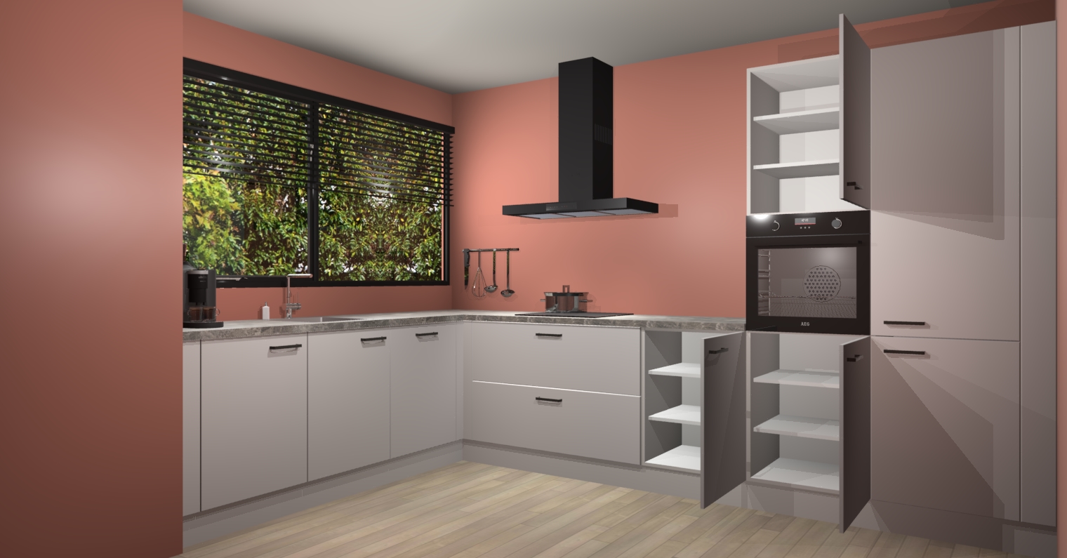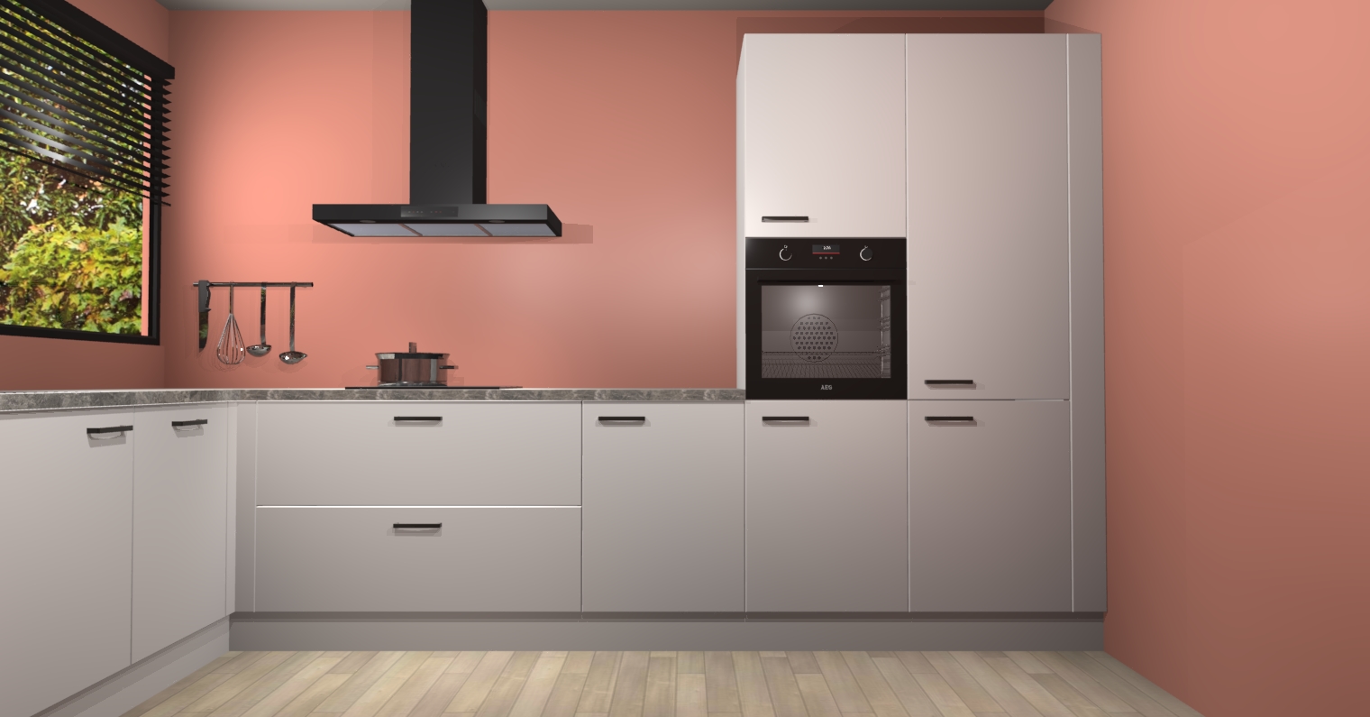 Met een modern, tijdloos design en ruime opslagruimte, zult u zich in no-time thuis voelen in uw nieuwe keuken. Uw leven wordt eenvoudiger met de soft-close deuren die voor het ultieme stille comfort zorgen - geen geluid dat u stoort terwijl u kookt. Ook is de keuken voorzien van 5 ingebouwde apparaten: een oven, inductie kookplaat, afzuigkap, vaatwasser en koelkast. Deze kunnen gemakkelijk na bestelling worden bijgewerkt naar AEG - waardoor uw luxe ervaring compleet is.