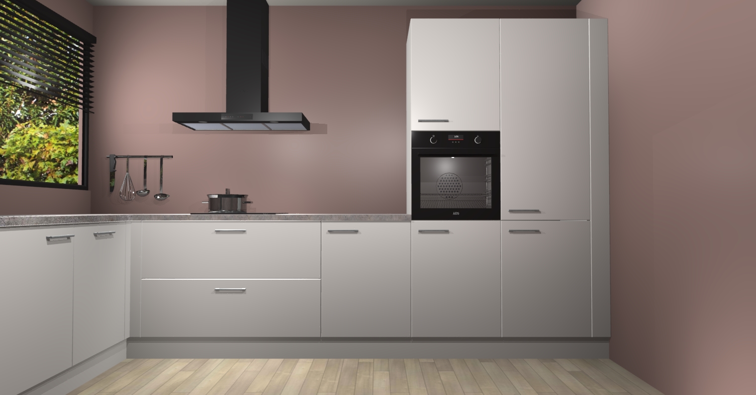 Met een modern, tijdloos design en ruime opslagruimte, zult u zich in no-time thuis voelen in uw nieuwe keuken. Uw leven wordt eenvoudiger met de soft-close deuren die voor het ultieme stille comfort zorgen - geen geluid dat u stoort terwijl u kookt. Ook is de keuken voorzien van 5 ingebouwde apparaten: een oven, inductie kookplaat, afzuigkap, vaatwasser en koelkast. Deze kunnen gemakkelijk na bestelling worden bijgewerkt naar AEG - waardoor uw luxe ervaring compleet is.