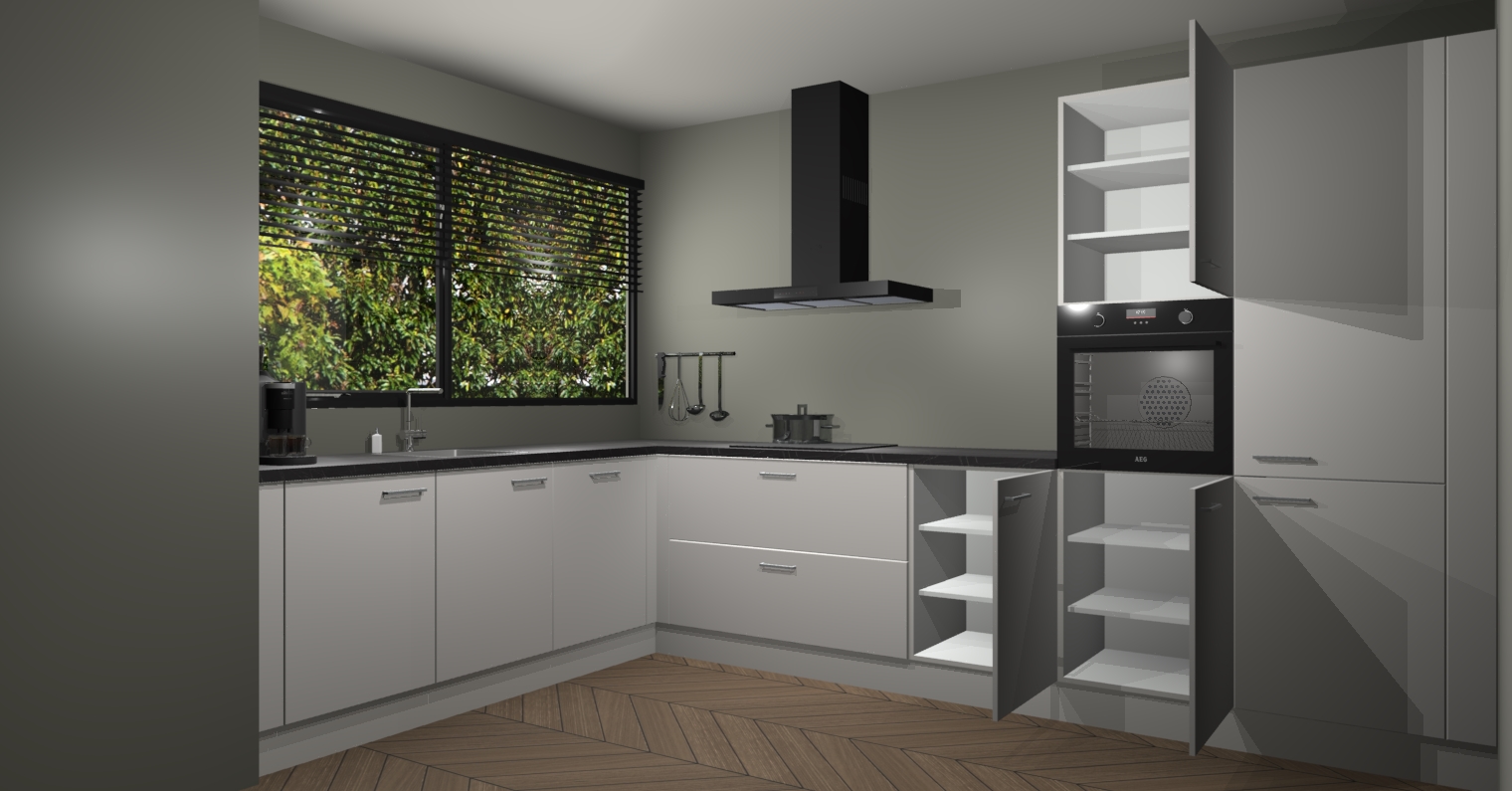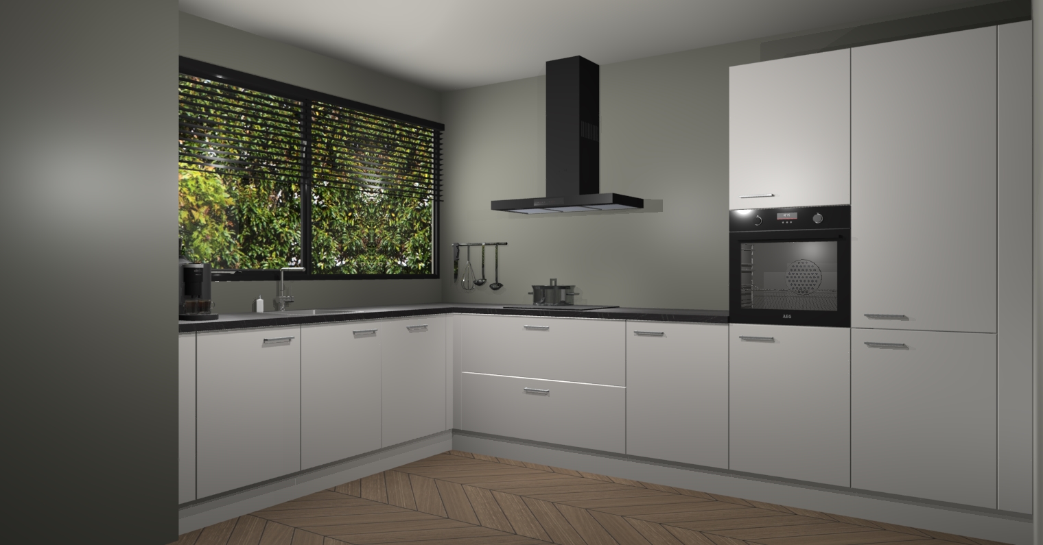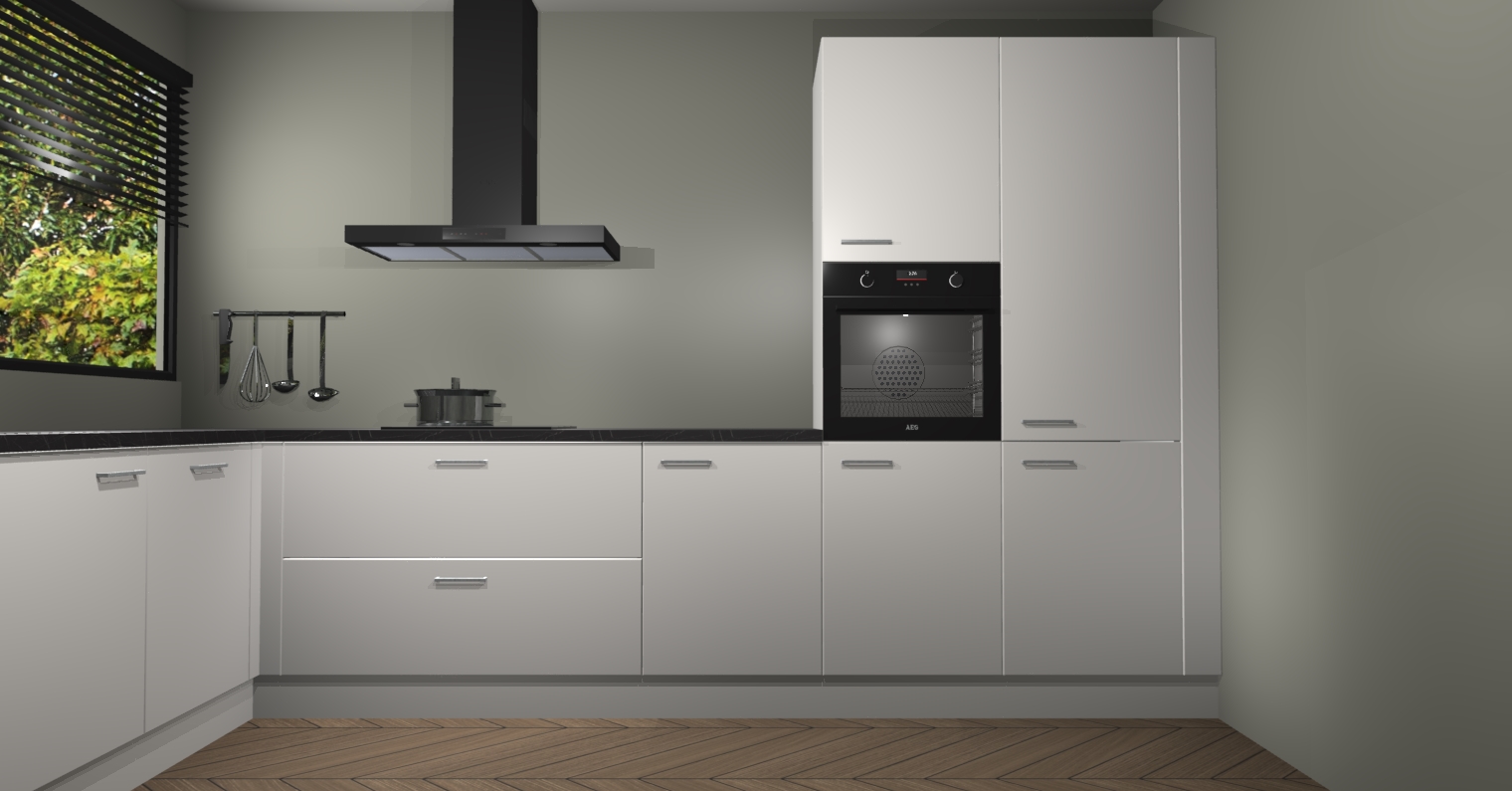 Met een modern, tijdloos design en ruime opslagruimte, zult u zich in no-time thuis voelen in uw nieuwe keuken. Uw leven wordt eenvoudiger met de soft-close deuren die voor het ultieme stille comfort zorgen - geen geluid dat u stoort terwijl u kookt. Ook is de keuken voorzien van 5 ingebouwde apparaten: een oven, inductie kookplaat, afzuigkap, vaatwasser en koelkast. Deze kunnen gemakkelijk na bestelling worden bijgewerkt naar AEG - waardoor uw luxe ervaring compleet is.