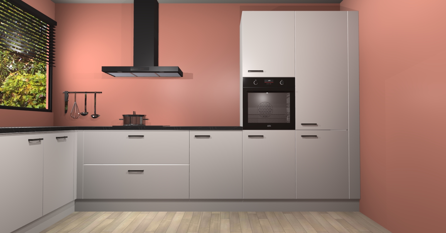 Met een modern, tijdloos design en ruime opslagruimte, zult u zich in no-time thuis voelen in uw nieuwe keuken. Uw leven wordt eenvoudiger met de soft-close deuren die voor het ultieme stille comfort zorgen - geen geluid dat u stoort terwijl u kookt. Ook is de keuken voorzien van 5 ingebouwde apparaten: een oven, inductie kookplaat, afzuigkap, vaatwasser en koelkast. Deze kunnen gemakkelijk na bestelling worden bijgewerkt naar AEG - waardoor uw luxe ervaring compleet is.