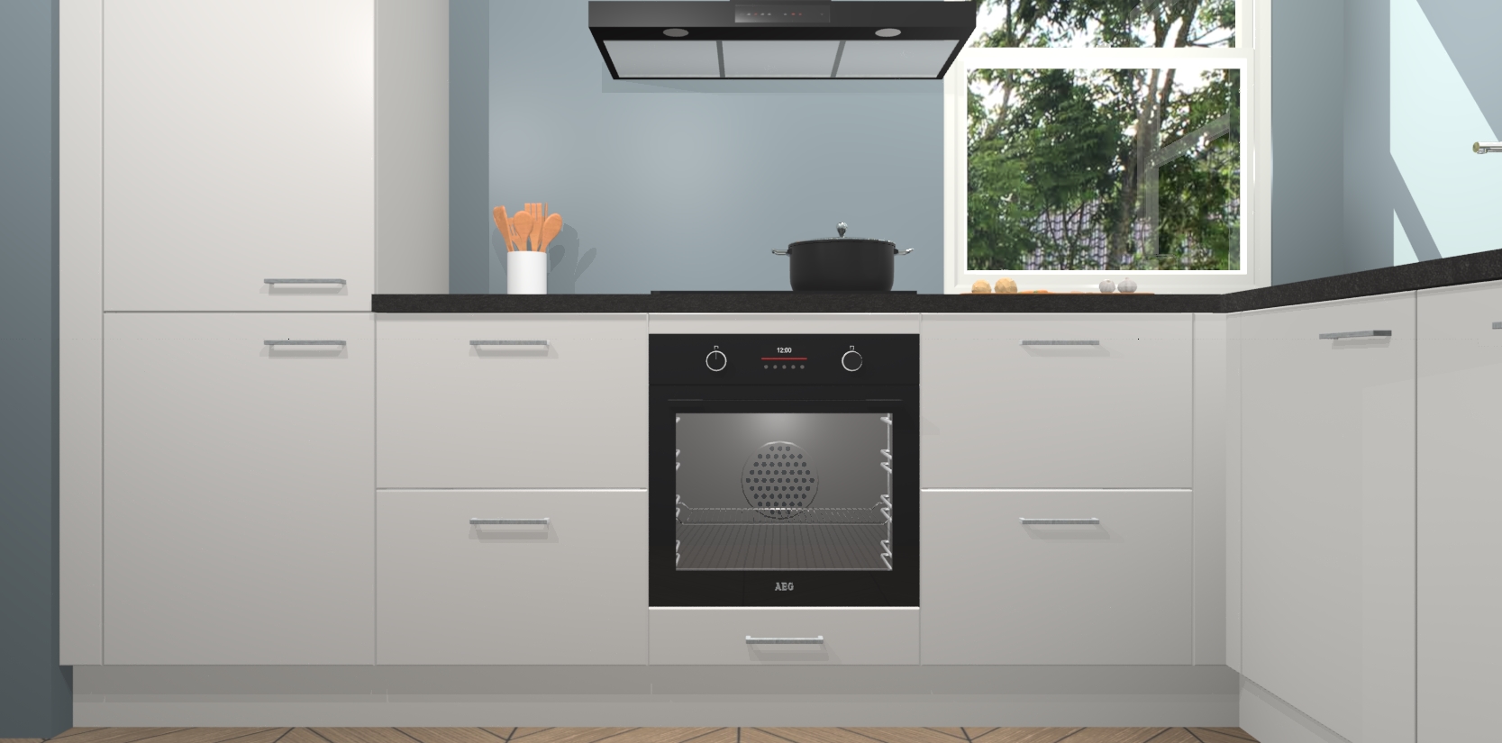 Wat maakt deze keuken zo bijzonder? Ten eerste geeft het houten werkblad uw ruimte een onmiskenbaar klassieke uitstraling. De natuurlijke afwerking roept warmte en elegantie op die nooit uit de mode zullen raken. Bovendien is het gemakkelijk schoon te houden en te onderhouden, zodat je er jarenlang plezier van kunt hebben. Als u op zoek bent naar extra gemak in uw keuken, dan heeft u bij het plaatsen van een bestelling bij ons ook de optie om uw toestellen te upgraden naar AEG-modellen - zo haalt u moderne innovatie van topmerken in apparatentechnologie rechtstreeks in huis.