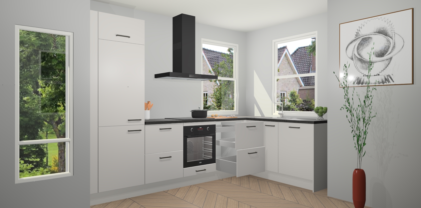 Inclusief plinten, stelpoten en werkblad
