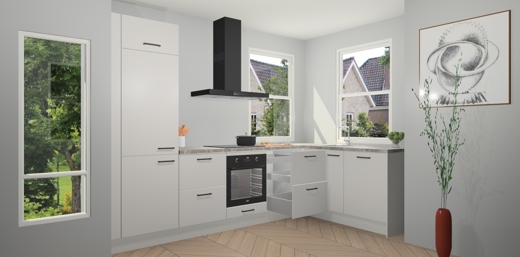 Inclusief plinten, stelpoten en werkblad