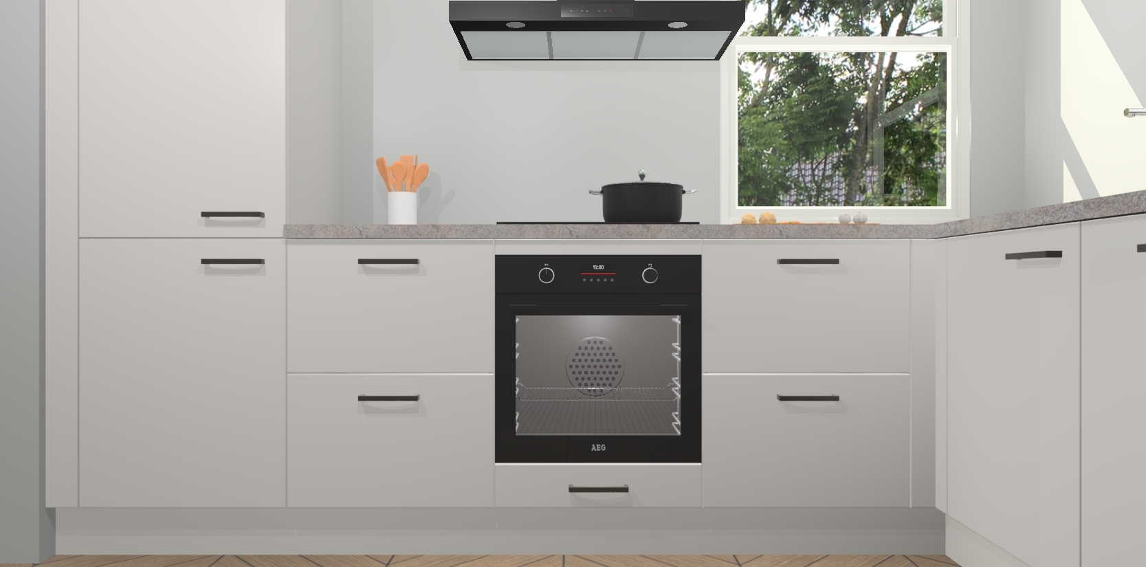 Wat maakt deze keuken zo bijzonder? Ten eerste geeft het houten werkblad uw ruimte een onmiskenbaar klassieke uitstraling. De natuurlijke afwerking roept warmte en elegantie op die nooit uit de mode zullen raken. Bovendien is het gemakkelijk schoon te houden en te onderhouden, zodat je er jarenlang plezier van kunt hebben. Als u op zoek bent naar extra gemak in uw keuken, dan heeft u bij het plaatsen van een bestelling bij ons ook de optie om uw toestellen te upgraden naar AEG-modellen - zo haalt u moderne innovatie van topmerken in apparatentechnologie rechtstreeks in huis.