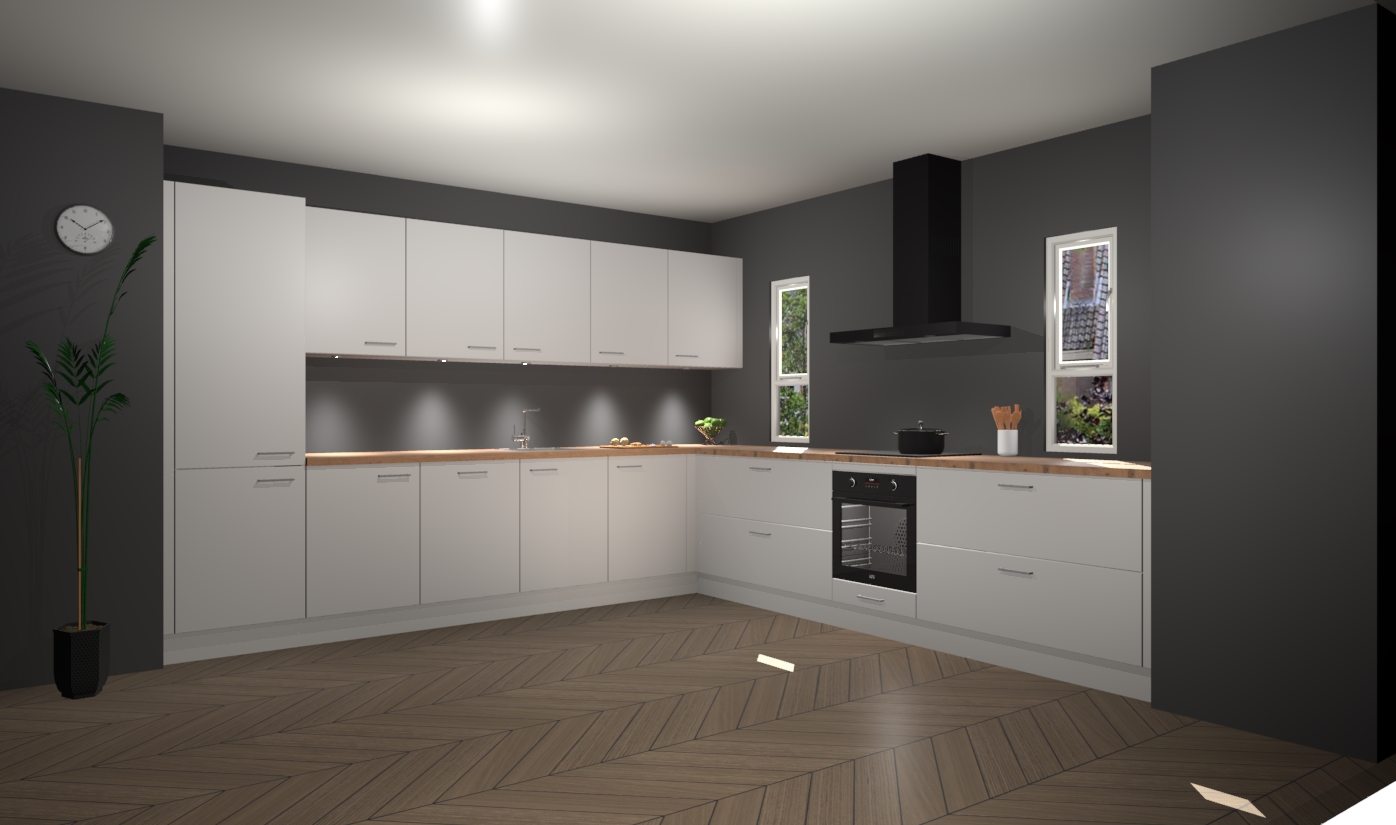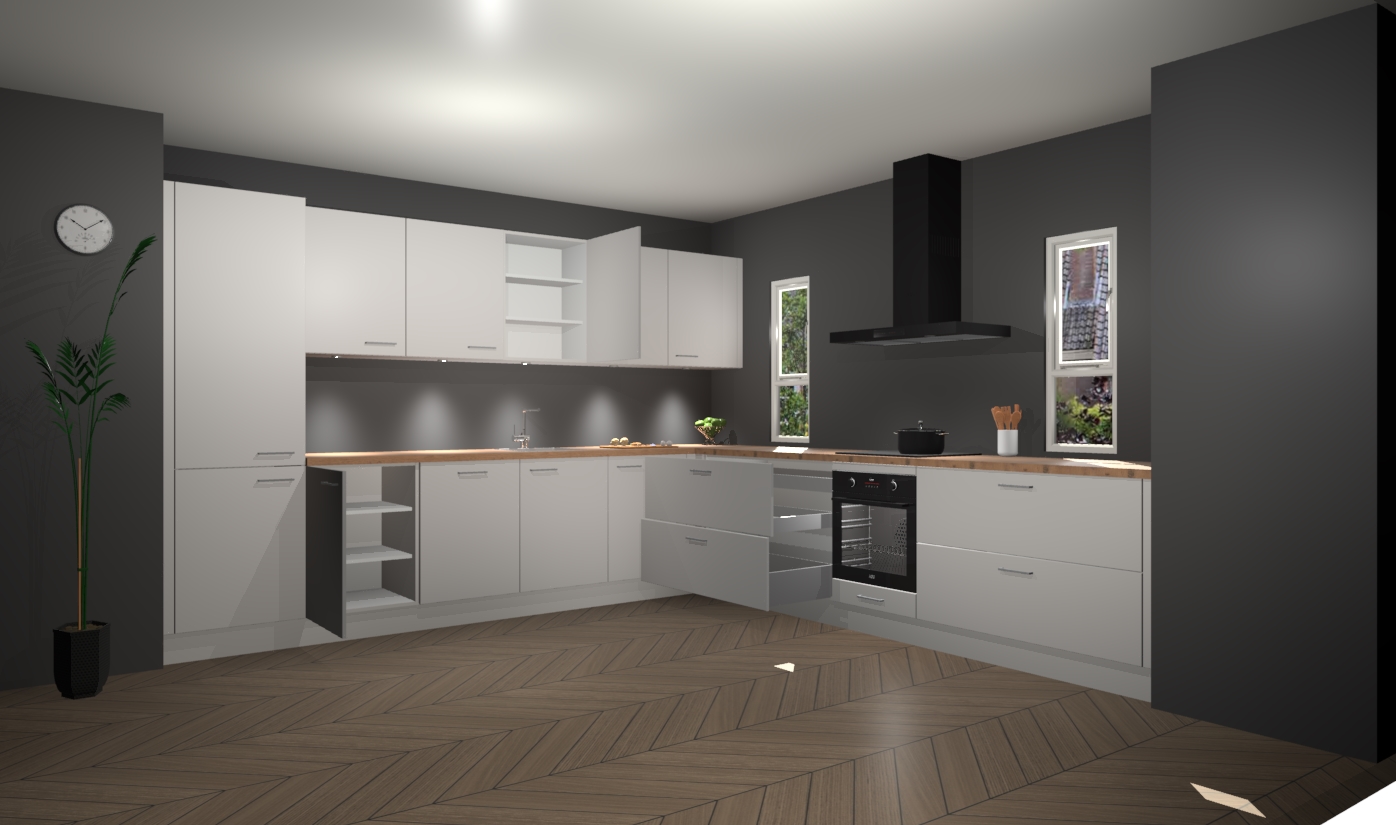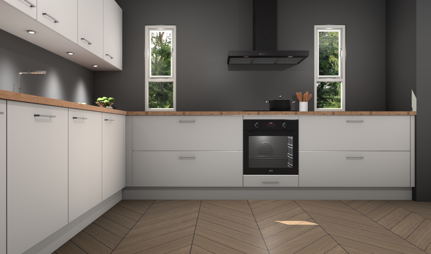 De zijdegrijze keuken is een ideale hoekkeuken en heeft alle functies en apparatuur die u maar nodig kunt hebben. Bij de bestelling krijgt u een oven, inductiekookplaat, afzuigkap, vaatwasser en koelkast - deze kunnen desgewenst eenvoudig worden uitgebreid naar AEG na bestellen. Elke kast wordt ook voor gemonteerd geleverd met soft close deuren die jarenlang gebruik beloven. Stelt u zich voor dat u geen gedoe heeft met vervelende montage - vanaf het moment dat u uw bestelling plaats, duurt het slechts 7 weken voor het bij u thuis geleverd wordt.