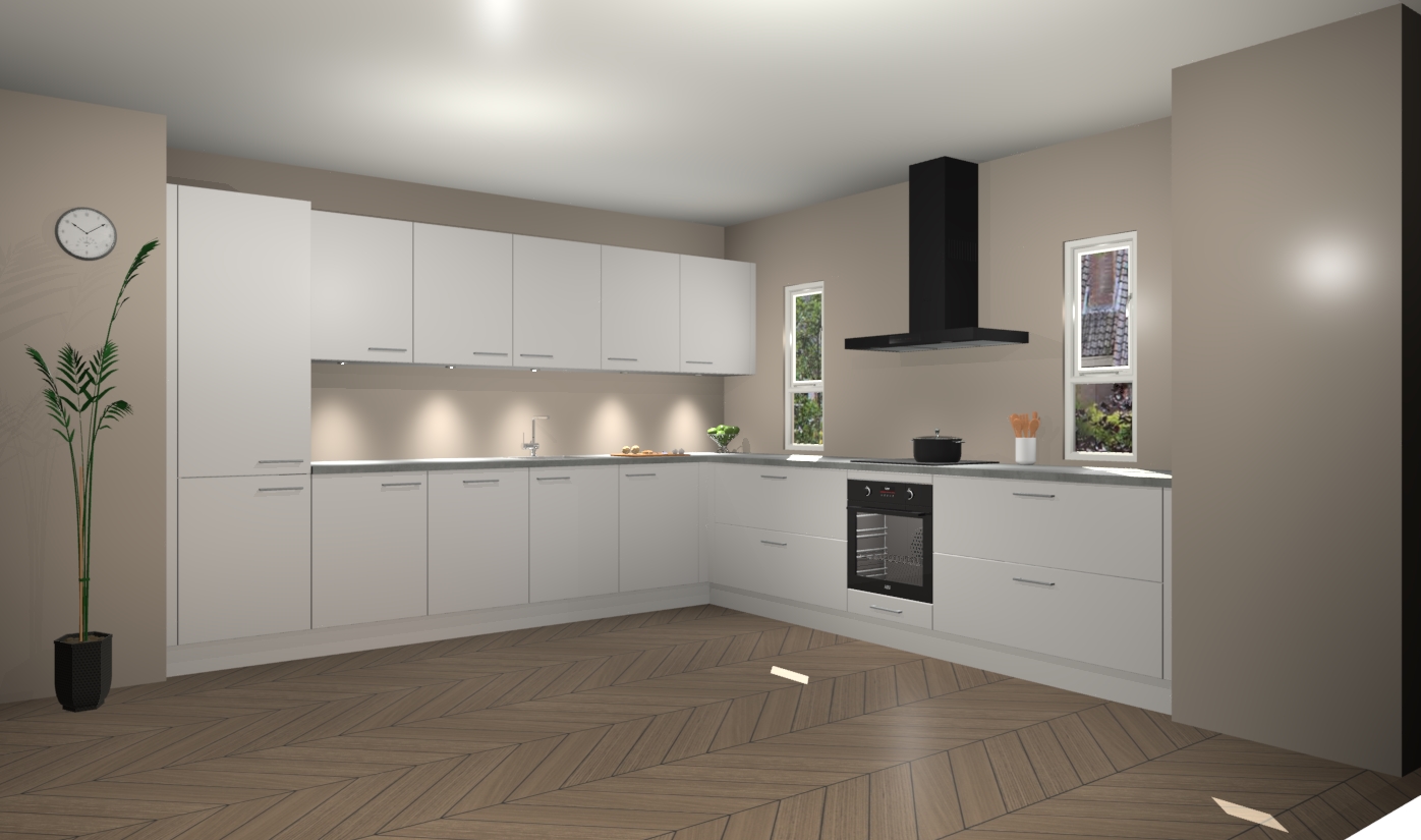 De zijdegrijze keuken is een ideale hoekkeuken en heeft alle functies en apparatuur die u maar nodig kunt hebben. Bij de bestelling krijgt u een oven, inductiekookplaat, afzuigkap, vaatwasser en koelkast - deze kunnen desgewenst eenvoudig worden uitgebreid naar AEG na bestellen. Elke kast wordt ook voor gemonteerd geleverd met soft close deuren die jarenlang gebruik beloven. Stelt u zich voor dat u geen gedoe heeft met vervelende montage - vanaf het moment dat u uw bestelling plaats, duurt het slechts 7 weken voor het bij u thuis geleverd wordt.
