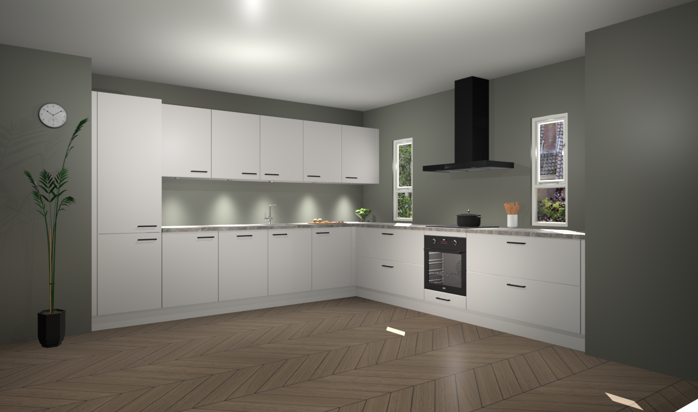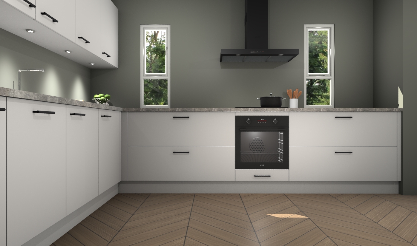 De zijdegrijze keuken is een ideale hoekkeuken en heeft alle functies en apparatuur die u maar nodig kunt hebben. Bij de bestelling krijgt u een oven, inductiekookplaat, afzuigkap, vaatwasser en koelkast - deze kunnen desgewenst eenvoudig worden uitgebreid naar AEG na bestellen. Elke kast wordt ook voor gemonteerd geleverd met soft close deuren die jarenlang gebruik beloven. Stelt u zich voor dat u geen gedoe heeft met vervelende montage - vanaf het moment dat u uw bestelling plaats, duurt het slechts 7 weken voor het bij u thuis geleverd wordt.