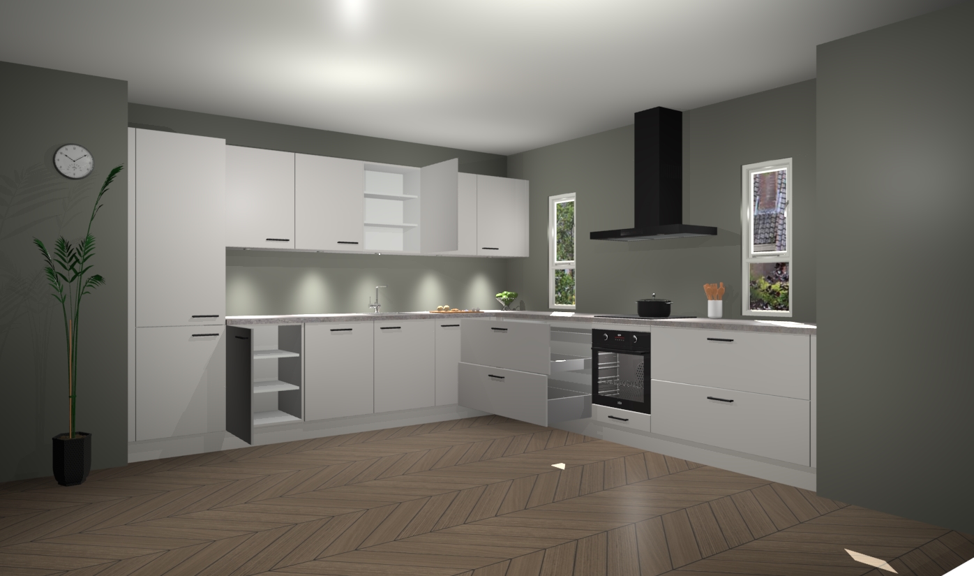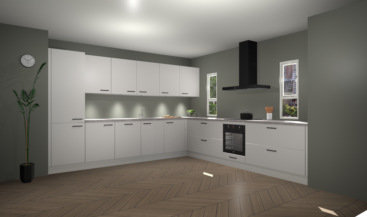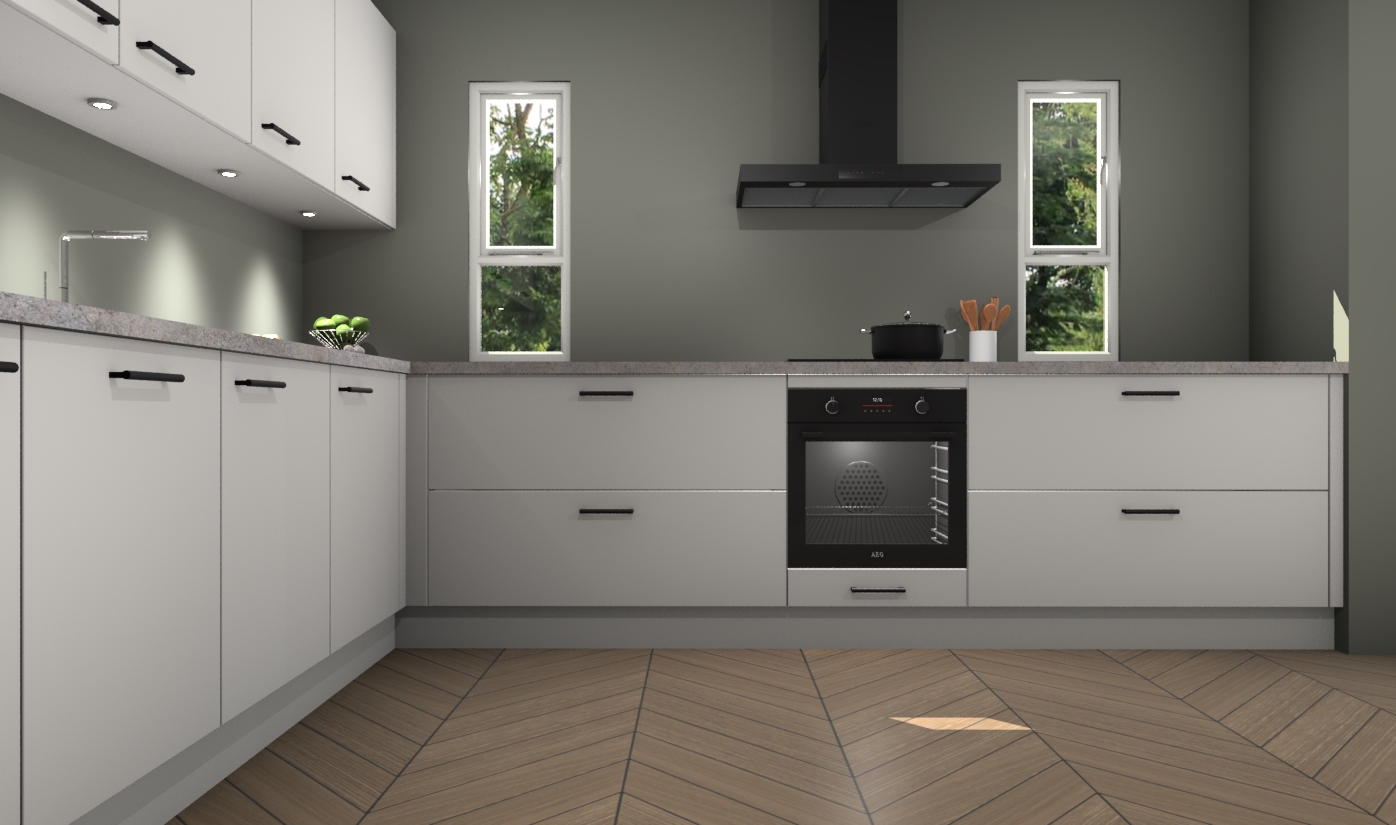 De zijdegrijze keuken is een ideale hoekkeuken en heeft alle functies en apparatuur die u maar nodig kunt hebben. Bij de bestelling krijgt u een oven, inductiekookplaat, afzuigkap, vaatwasser en koelkast - deze kunnen desgewenst eenvoudig worden uitgebreid naar AEG na bestellen. Elke kast wordt ook voor gemonteerd geleverd met soft close deuren die jarenlang gebruik beloven. Stelt u zich voor dat u geen gedoe heeft met vervelende montage - vanaf het moment dat u uw bestelling plaats, duurt het slechts 7 weken voor het bij u thuis geleverd wordt.