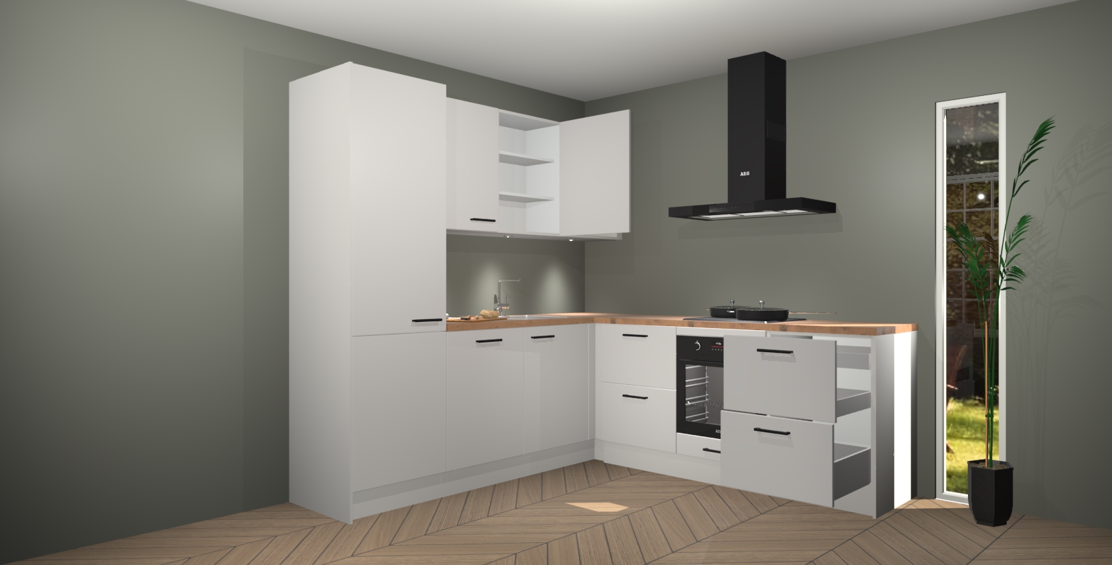 Inclusief plinten, stelpoten en werkblad