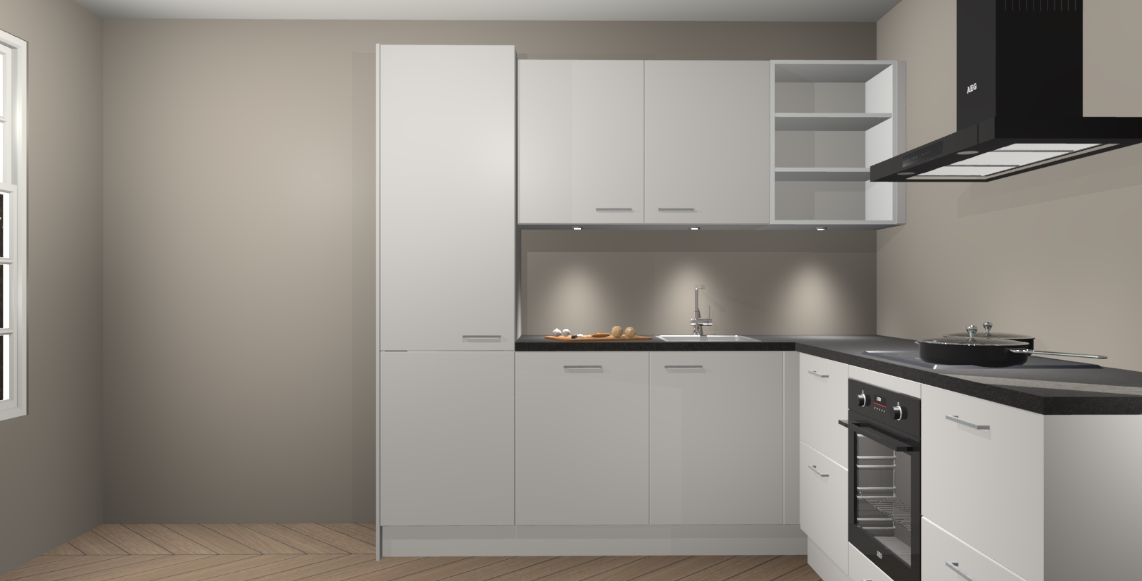 Met zijn moderne design en aantrekkelijke hoekopstelling biedt deze keuken een unieke look die zelfs de meest veeleisende huiseigenaar zal bevallen. En omdat de binnenkant van de kasten dezelfde kleur heeft als de buitenkant, heeft uw keuken een consistente afwerking. Bovenop de geweldige look is opbergruimte ook geen probleem, met voldoende kast- en laderuimte achter zelfs de mooiste buitenkant.