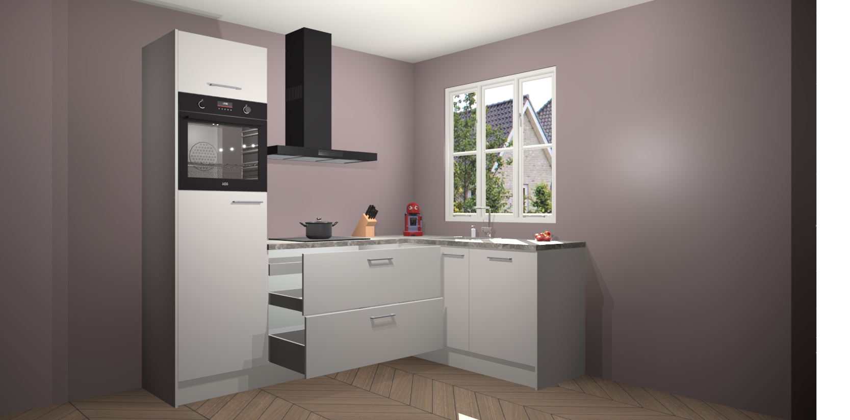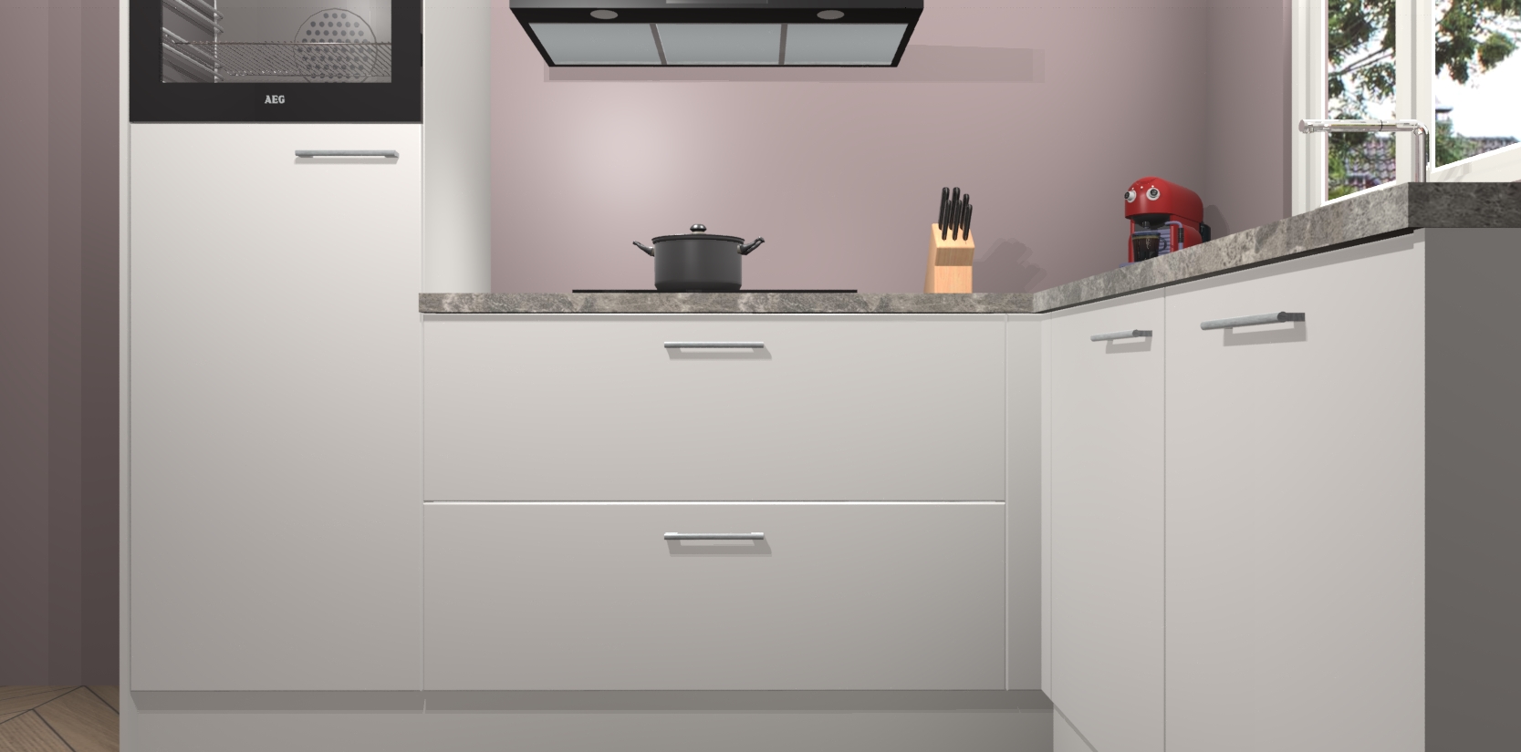 Dit model biedt u voldoende opbergruimte en vijf ingebouwde apparaten: een oven, inductiekookplaat, afzuigkap, vaatwasser en koelkast. Deze apparaten kunnen gemakkelijk worden geüpgrade naar AEG nadat u besteld heeft. De verschillende laden en kastjes bevatten softclose-deuren waardoor ze gezellig dichtvallen met een geruststellend helemaal geruisloos geluid. En dat is nog niet alles! We garanderen ook dat de prijs altijd laag blijft - dus haal nu uw Zijdegrijze keuken Victoria terwijl het kan.