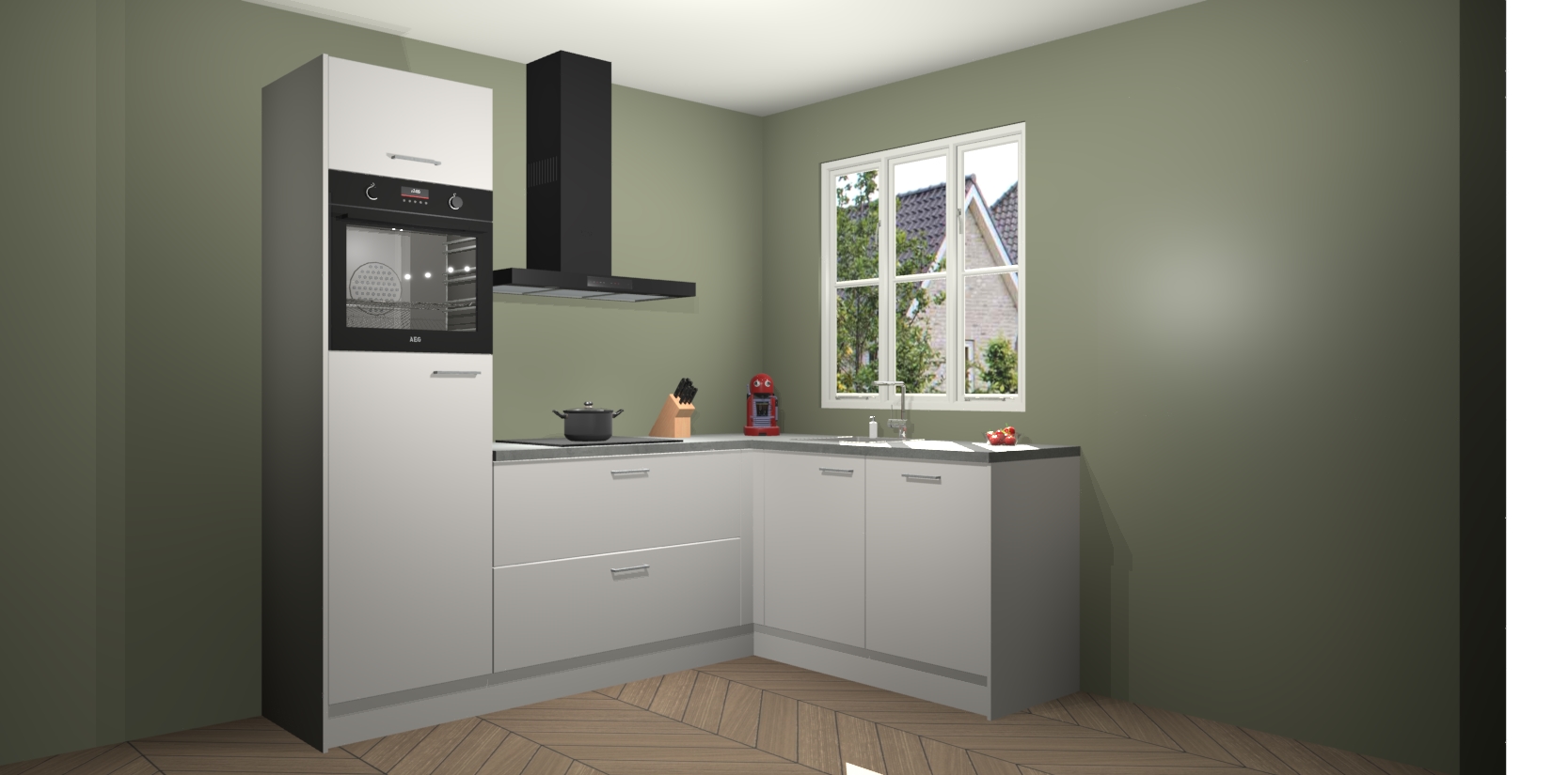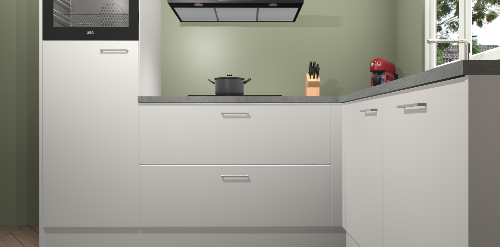 Dit model biedt u voldoende opbergruimte en vijf ingebouwde apparaten: een oven, inductiekookplaat, afzuigkap, vaatwasser en koelkast. Deze apparaten kunnen gemakkelijk worden geüpgrade naar AEG nadat u besteld heeft. De verschillende laden en kastjes bevatten softclose-deuren waardoor ze gezellig dichtvallen met een geruststellend helemaal geruisloos geluid. En dat is nog niet alles! We garanderen ook dat de prijs altijd laag blijft - dus haal nu uw Zijdegrijze keuken Victoria terwijl het kan.