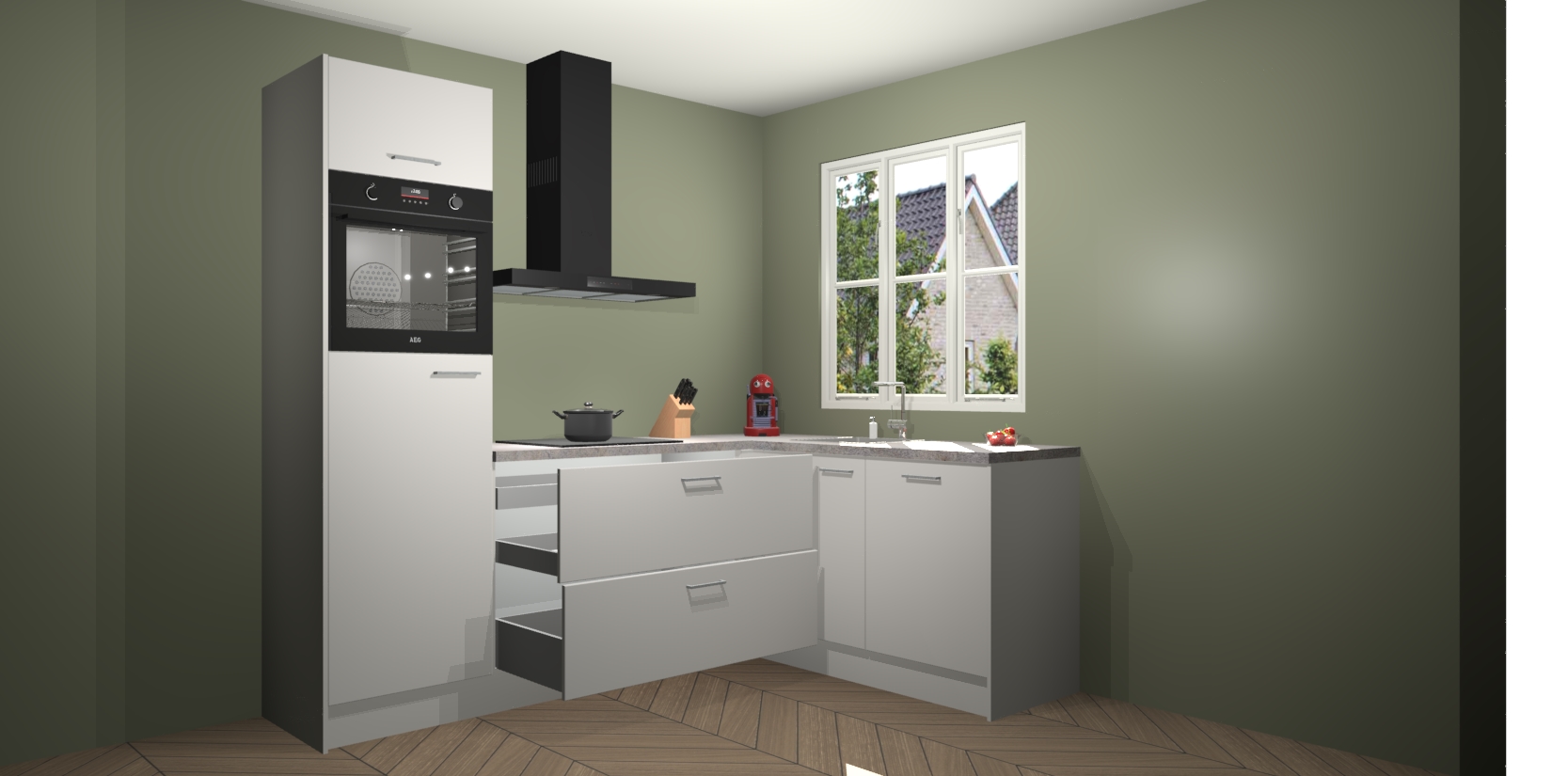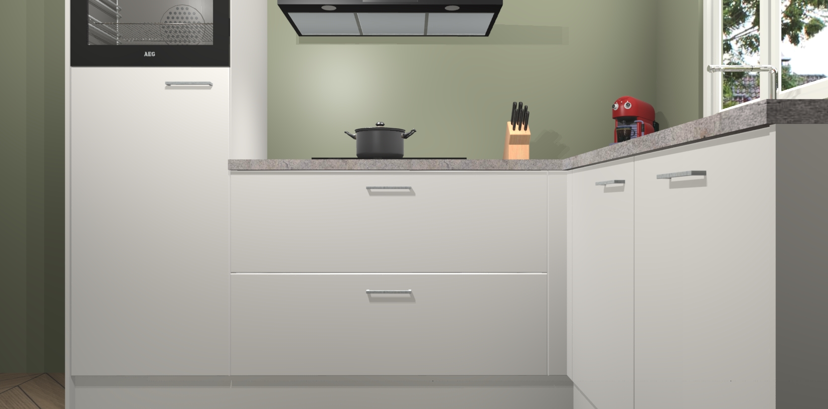 Dit model biedt u voldoende opbergruimte en vijf ingebouwde apparaten: een oven, inductiekookplaat, afzuigkap, vaatwasser en koelkast. Deze apparaten kunnen gemakkelijk worden geüpgrade naar AEG nadat u besteld heeft. De verschillende laden en kastjes bevatten softclose-deuren waardoor ze gezellig dichtvallen met een geruststellend helemaal geruisloos geluid. En dat is nog niet alles! We garanderen ook dat de prijs altijd laag blijft - dus haal nu uw Zijdegrijze keuken Victoria terwijl het kan.