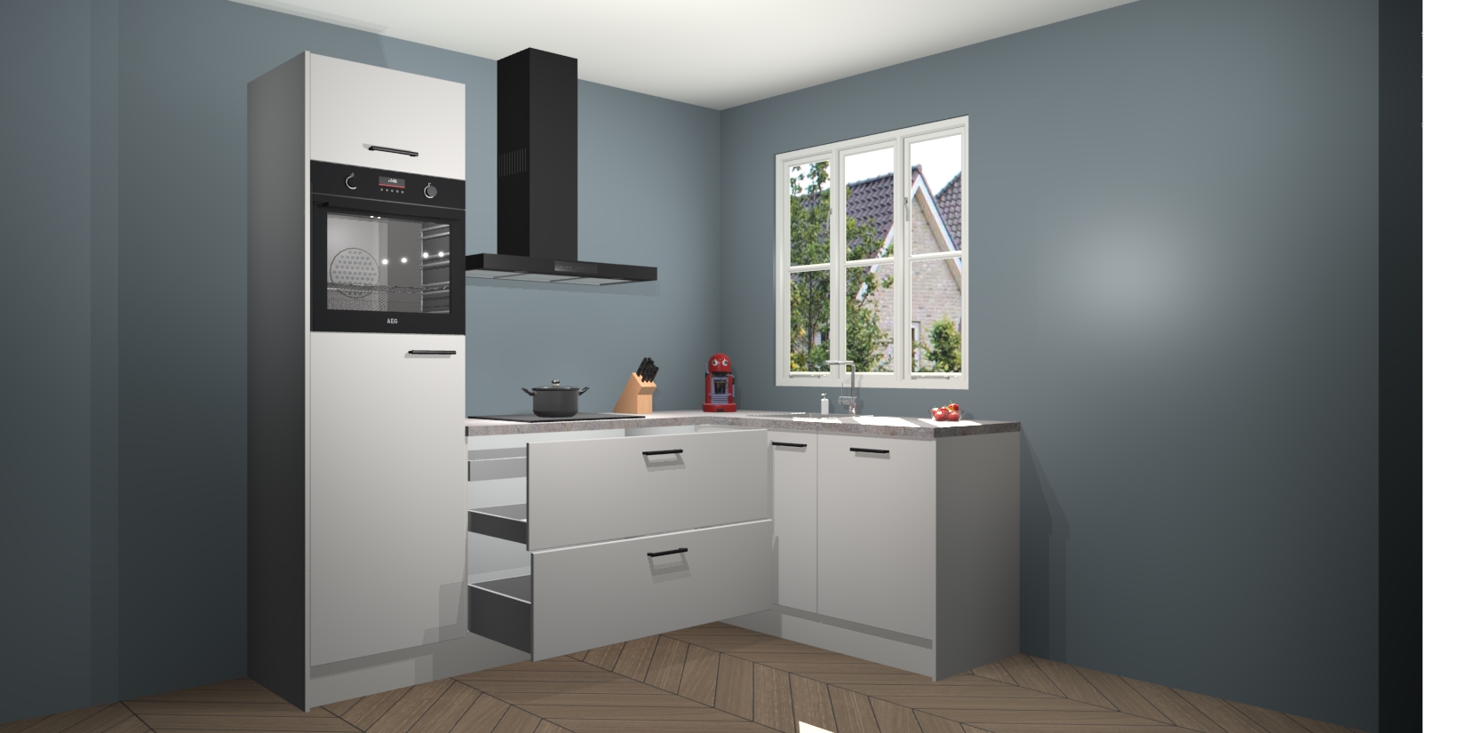 Dit model biedt u voldoende opbergruimte en vijf ingebouwde apparaten: een oven, inductiekookplaat, afzuigkap, vaatwasser en koelkast. Deze apparaten kunnen gemakkelijk worden geüpgrade naar AEG nadat u besteld heeft. De verschillende laden en kastjes bevatten softclose-deuren waardoor ze gezellig dichtvallen met een geruststellend helemaal geruisloos geluid. En dat is nog niet alles! We garanderen ook dat de prijs altijd laag blijft - dus haal nu uw Zijdegrijze keuken Victoria terwijl het kan.