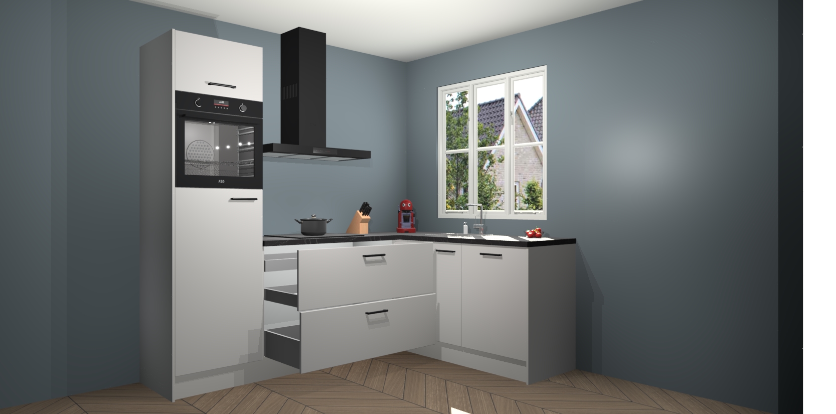 Dit model biedt u voldoende opbergruimte en vijf ingebouwde apparaten: een oven, inductiekookplaat, afzuigkap, vaatwasser en koelkast. Deze apparaten kunnen gemakkelijk worden geüpgrade naar AEG nadat u besteld heeft. De verschillende laden en kastjes bevatten softclose-deuren waardoor ze gezellig dichtvallen met een geruststellend helemaal geruisloos geluid. En dat is nog niet alles! We garanderen ook dat de prijs altijd laag blijft - dus haal nu uw Zijdegrijze keuken Victoria terwijl het kan.