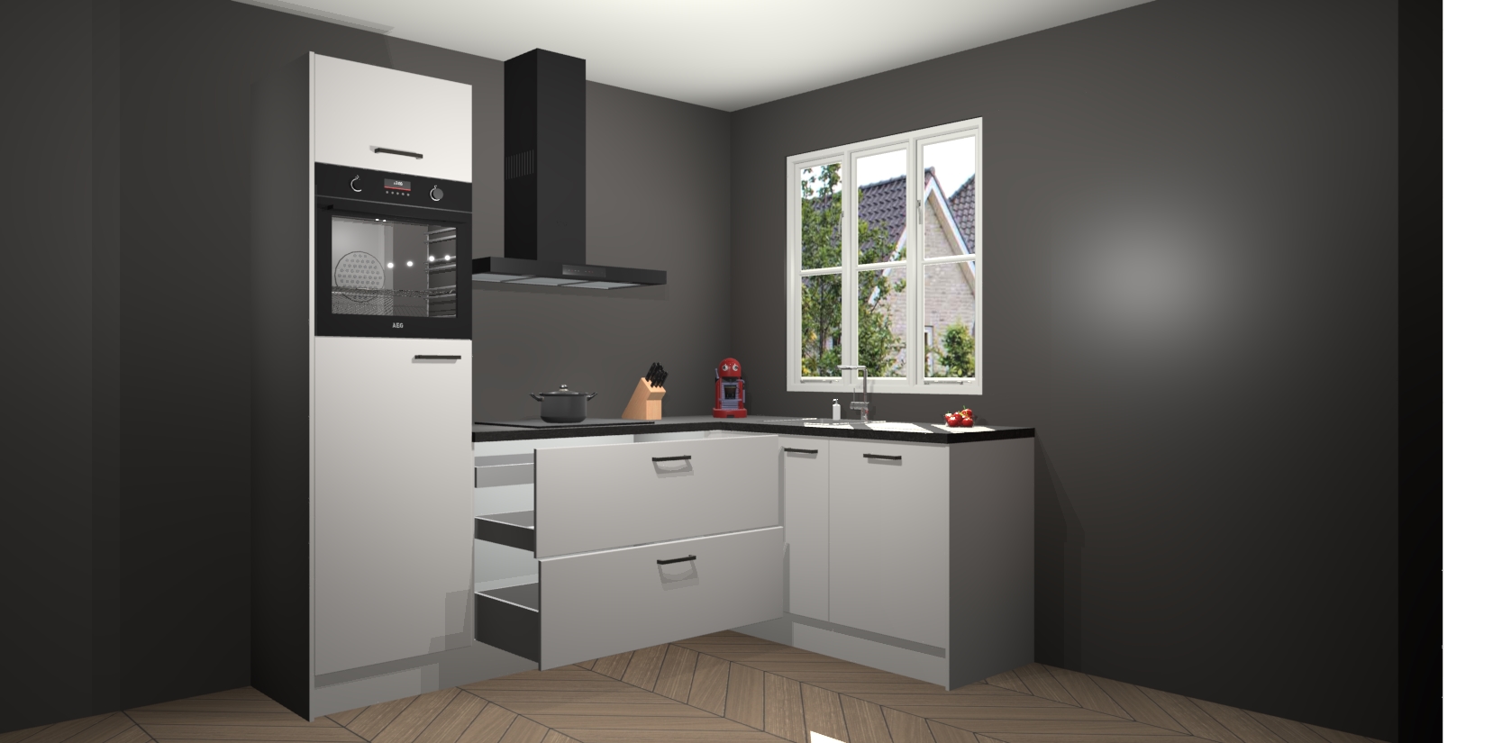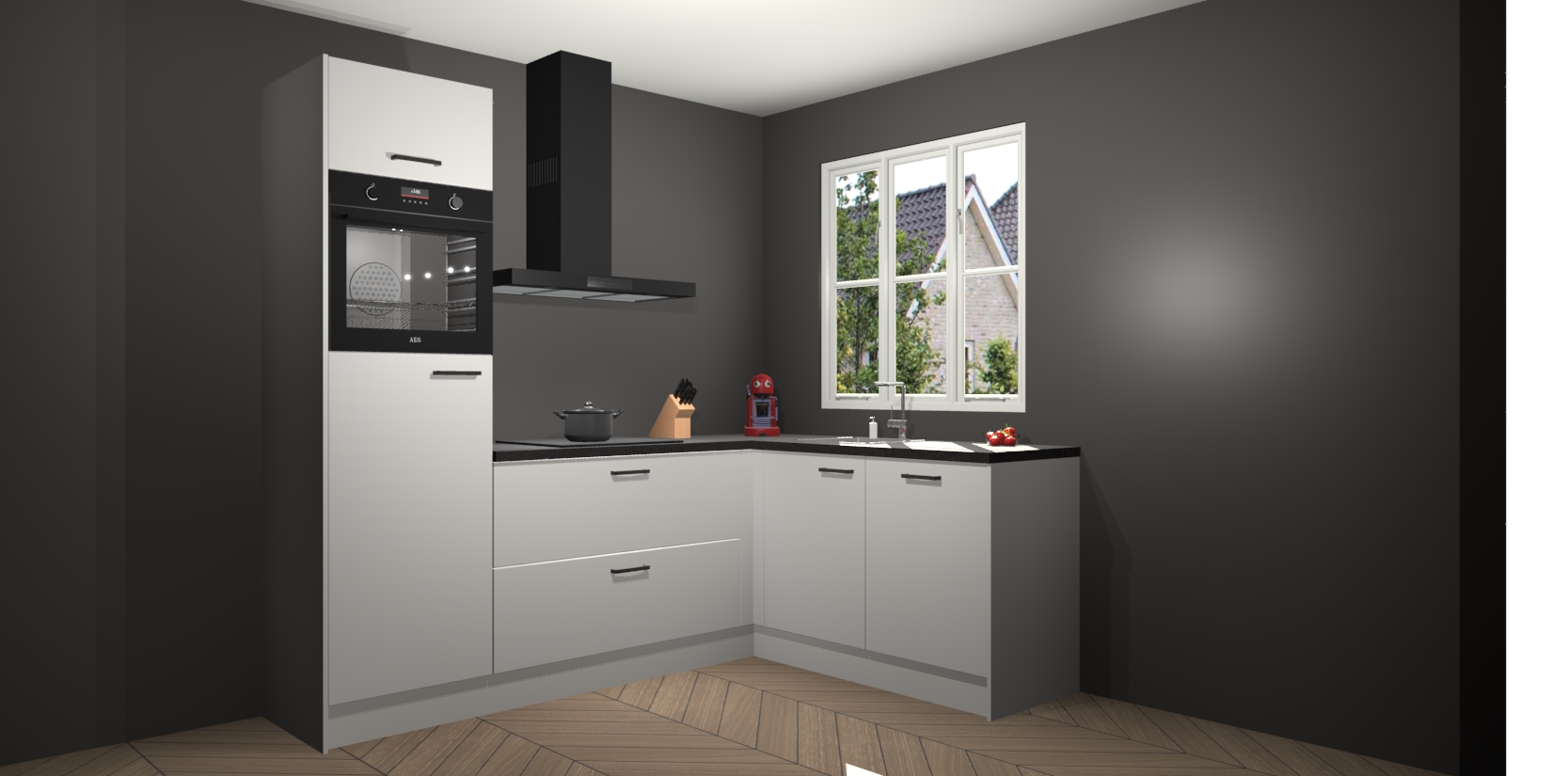 Dit model biedt u voldoende opbergruimte en vijf ingebouwde apparaten: een oven, inductiekookplaat, afzuigkap, vaatwasser en koelkast. Deze apparaten kunnen gemakkelijk worden geüpgrade naar AEG nadat u besteld heeft. De verschillende laden en kastjes bevatten softclose-deuren waardoor ze gezellig dichtvallen met een geruststellend helemaal geruisloos geluid. En dat is nog niet alles! We garanderen ook dat de prijs altijd laag blijft - dus haal nu uw Zijdegrijze keuken Victoria terwijl het kan.