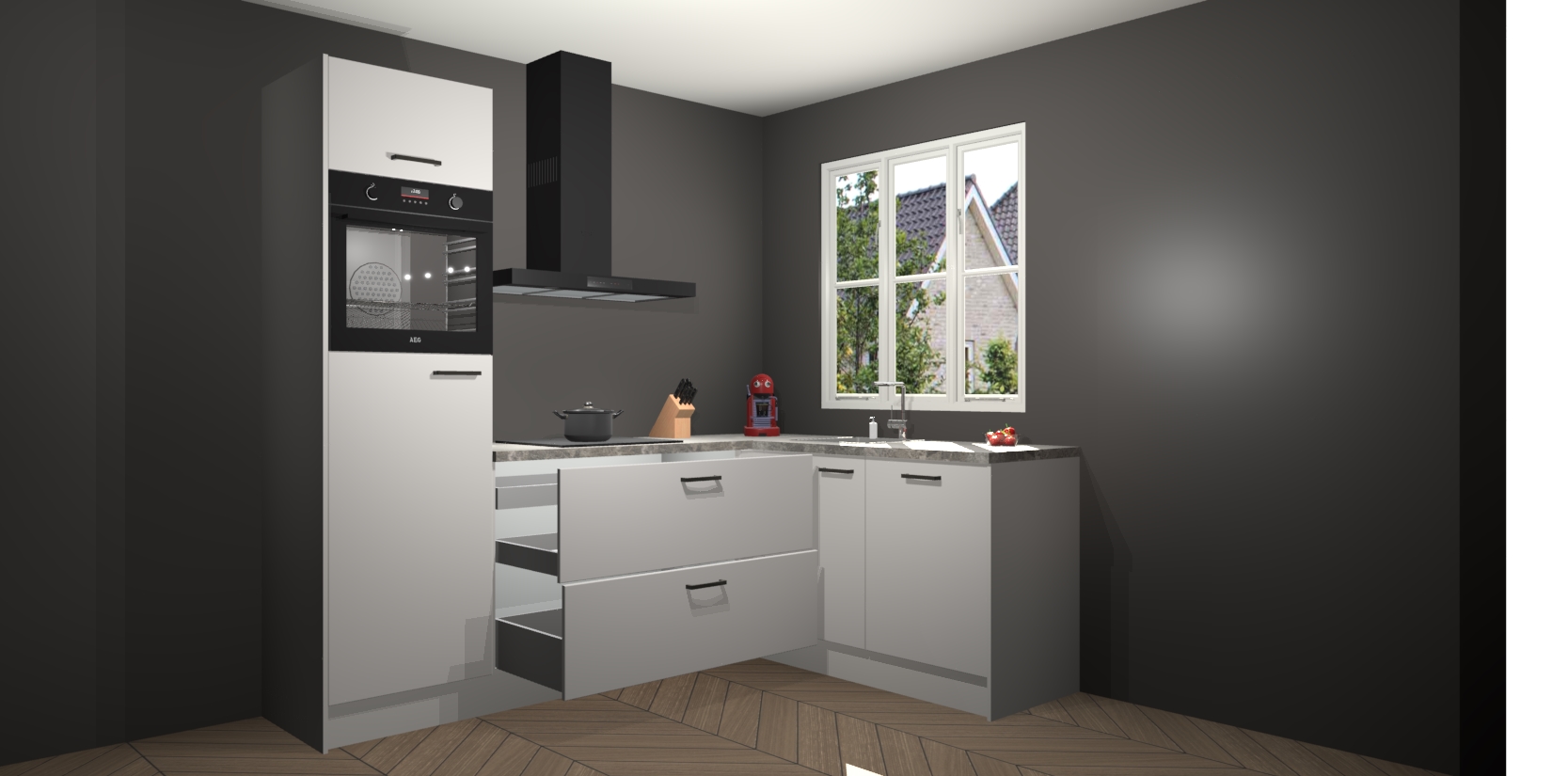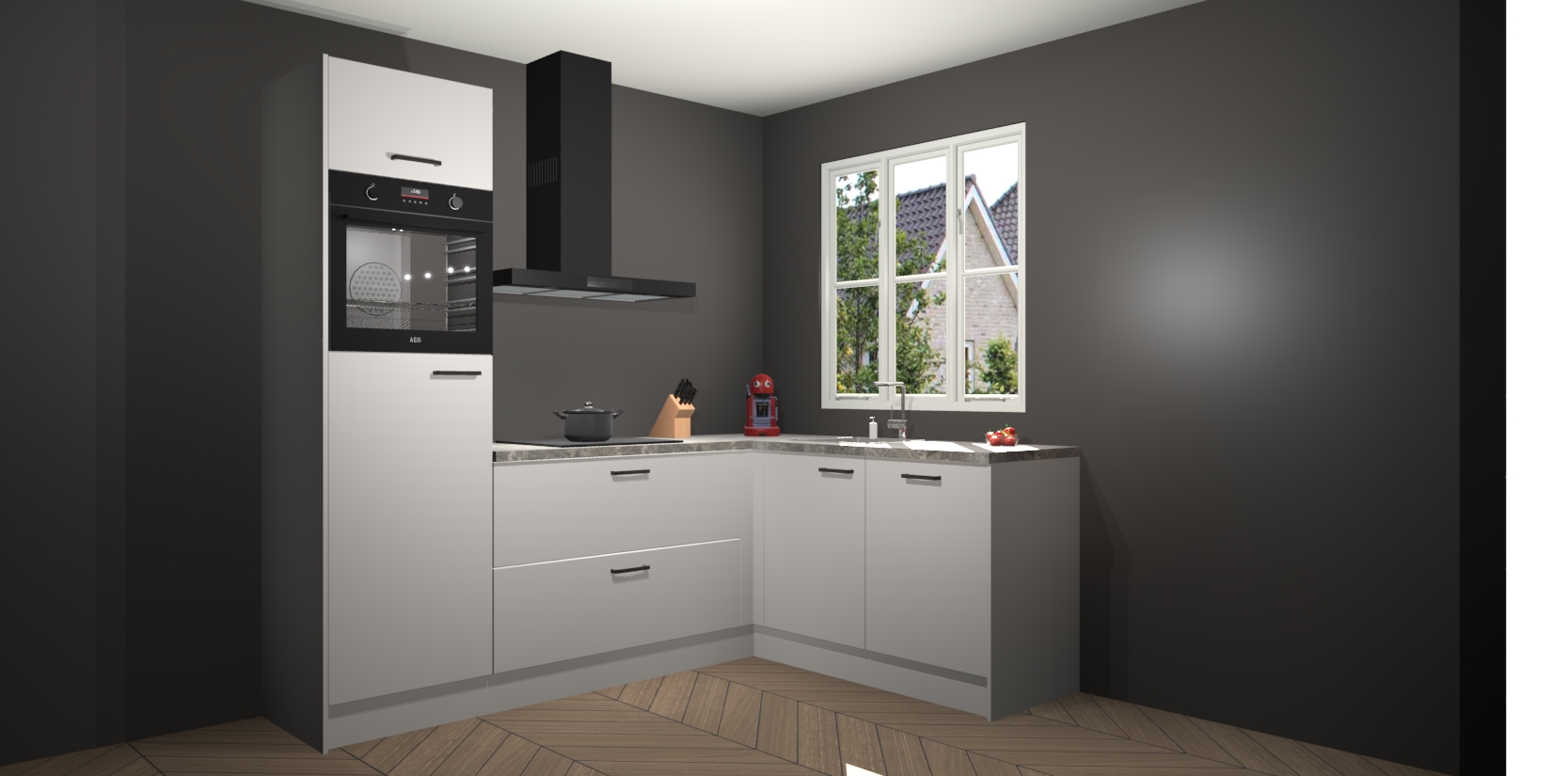 Dit model biedt u voldoende opbergruimte en vijf ingebouwde apparaten: een oven, inductiekookplaat, afzuigkap, vaatwasser en koelkast. Deze apparaten kunnen gemakkelijk worden geüpgrade naar AEG nadat u besteld heeft. De verschillende laden en kastjes bevatten softclose-deuren waardoor ze gezellig dichtvallen met een geruststellend helemaal geruisloos geluid. En dat is nog niet alles! We garanderen ook dat de prijs altijd laag blijft - dus haal nu uw Zijdegrijze keuken Victoria terwijl het kan.