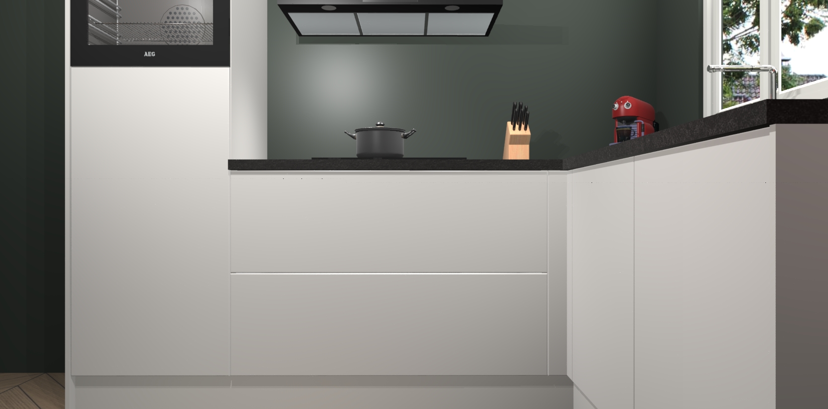 Dit model biedt u voldoende opbergruimte en vijf ingebouwde apparaten: een oven, inductiekookplaat, afzuigkap, vaatwasser en koelkast. Deze apparaten kunnen gemakkelijk worden geüpgrade naar AEG nadat u besteld heeft. De verschillende laden en kastjes bevatten softclose-deuren waardoor ze gezellig dichtvallen met een geruststellend helemaal geruisloos geluid. En dat is nog niet alles! We garanderen ook dat de prijs altijd laag blijft - dus haal nu uw Zijdegrijze keuken Victoria terwijl het kan.