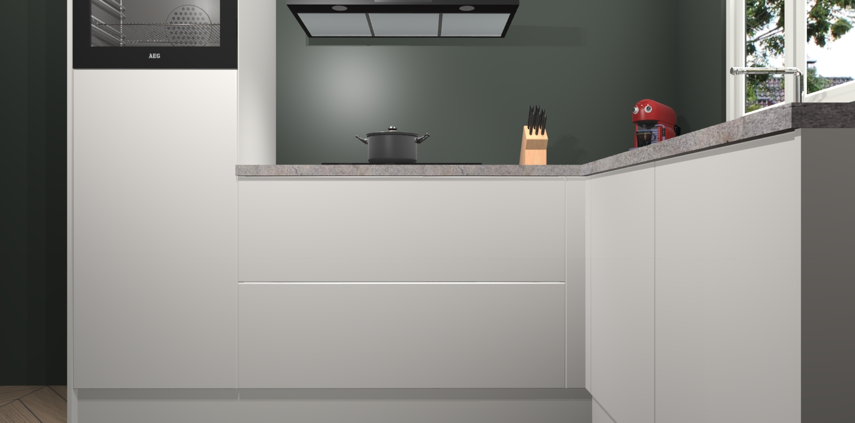 Dit model biedt u voldoende opbergruimte en vijf ingebouwde apparaten: een oven, inductiekookplaat, afzuigkap, vaatwasser en koelkast. Deze apparaten kunnen gemakkelijk worden geüpgrade naar AEG nadat u besteld heeft. De verschillende laden en kastjes bevatten softclose-deuren waardoor ze gezellig dichtvallen met een geruststellend helemaal geruisloos geluid. En dat is nog niet alles! We garanderen ook dat de prijs altijd laag blijft - dus haal nu uw Zijdegrijze keuken Victoria terwijl het kan.