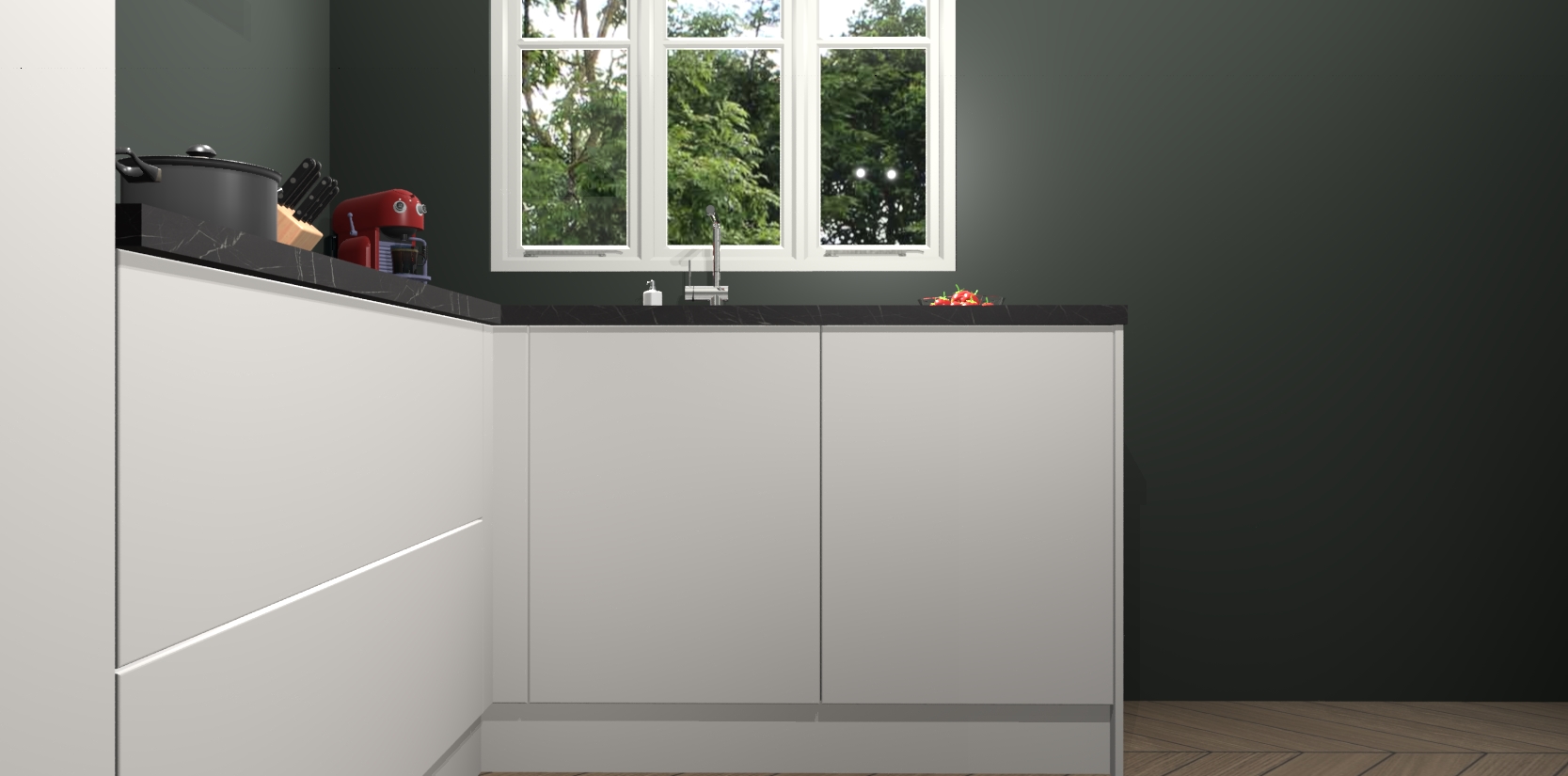 Dit model biedt u voldoende opbergruimte en vijf ingebouwde apparaten: een oven, inductiekookplaat, afzuigkap, vaatwasser en koelkast. Deze apparaten kunnen gemakkelijk worden geüpgrade naar AEG nadat u besteld heeft. De verschillende laden en kastjes bevatten softclose-deuren waardoor ze gezellig dichtvallen met een geruststellend helemaal geruisloos geluid. En dat is nog niet alles! We garanderen ook dat de prijs altijd laag blijft - dus haal nu uw Zijdegrijze keuken Victoria terwijl het kan.