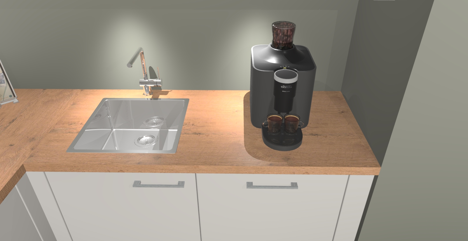 - De spoelbak is nog niet in gevreesd. Dit dient tijdens het werk gedaan te worden