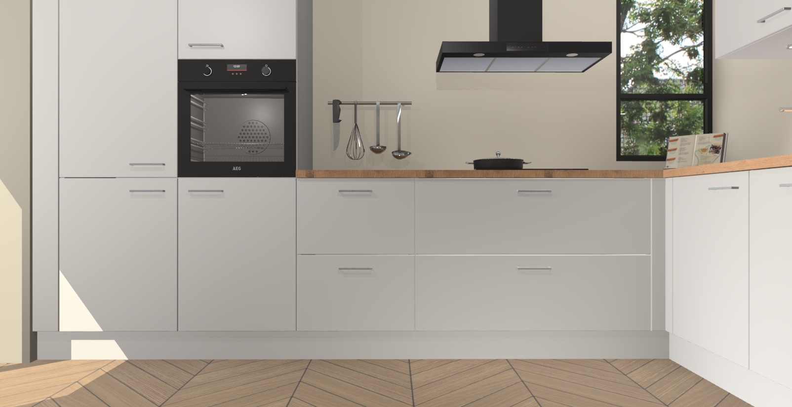 Welkom in uw nieuwe moderne keuken! Laat ons u voorstellen aan de Zijdegrijze keuken Vlaanderen . Deze prachtige hoekkeuken straalt exclusiviteit en luxe uit als geen ander. Het strakke design, de tijdloze kleuren en het model maken van deze keuken een moderne klassieker. En met voldoende opbergruimte heeft deze keuken echt voor ieder wat wils.