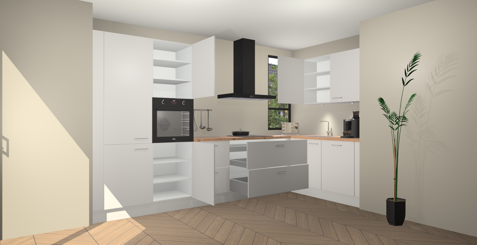 Inclusief plinten, stelpoten en werkblad